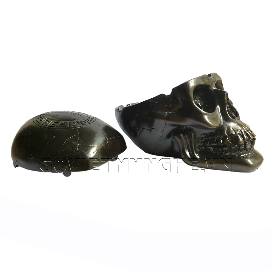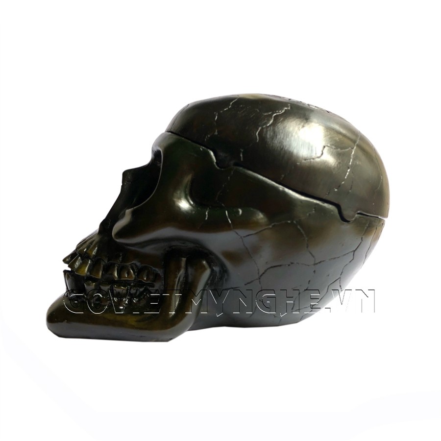 Tượng đá trang trí hình đầu lâu - Gạt tàn thuốc trang trí phòng khách hình Đầu Lâu - Màu nâu đen - Dài 16cm
