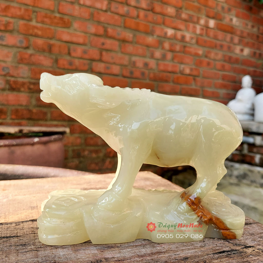 Tượng đá trâu 12 con giáp phong thủy đá ngọc Pakistan 15cm đá Non Nước