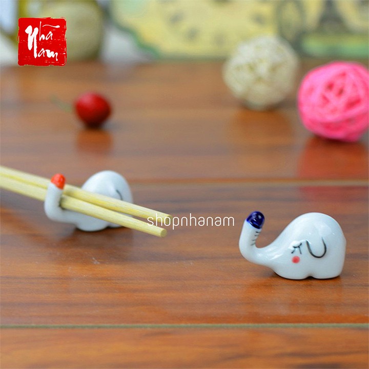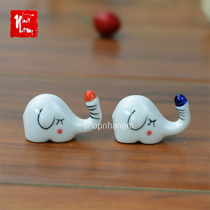 Tượng gác đũa gốm sứ hình chú voi xinh xắn phụ kiện bàn ăn