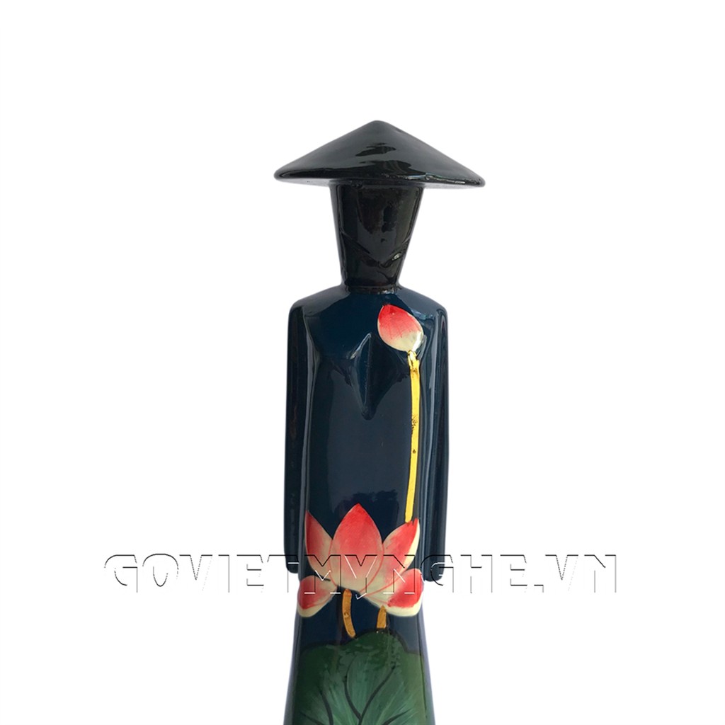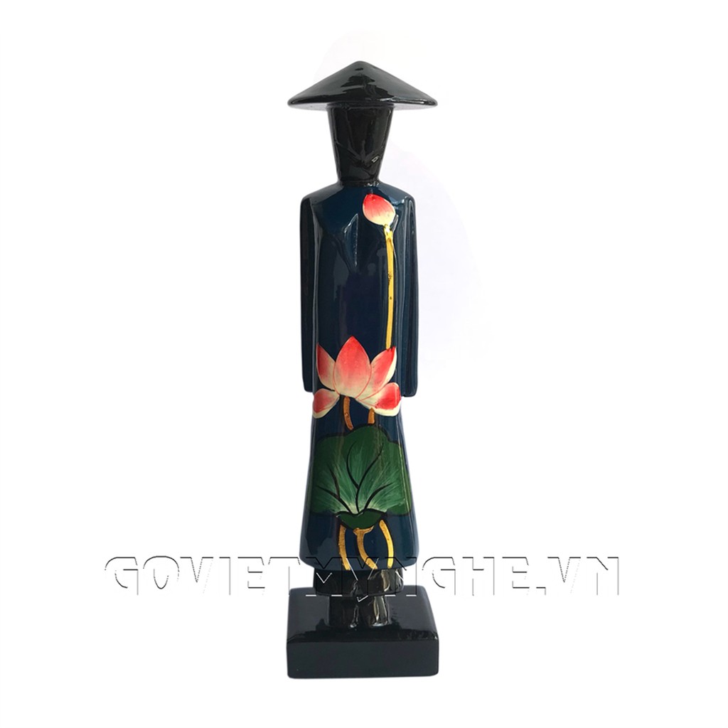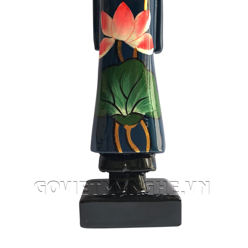 Tượng Gỗ Sơn Mài Miss Việt Nam - Vẽ Sen Màu Xanh Dương