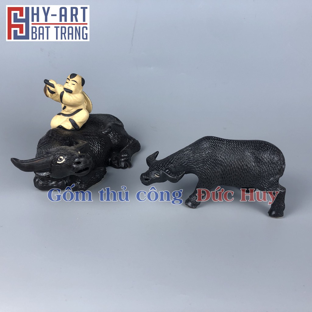 Tượng gốm Bé chăn trâu 2 loại phụ kiện trang trí tiểu cảnh hòn non bộ bể cá chậu cây bonsai-Chất liệu: gốm đất nung (Hoàng Thổ) KHÔNG ĐỘC HẠI, KHÔNG GÂY Ô NHIỄM NƯỚC.