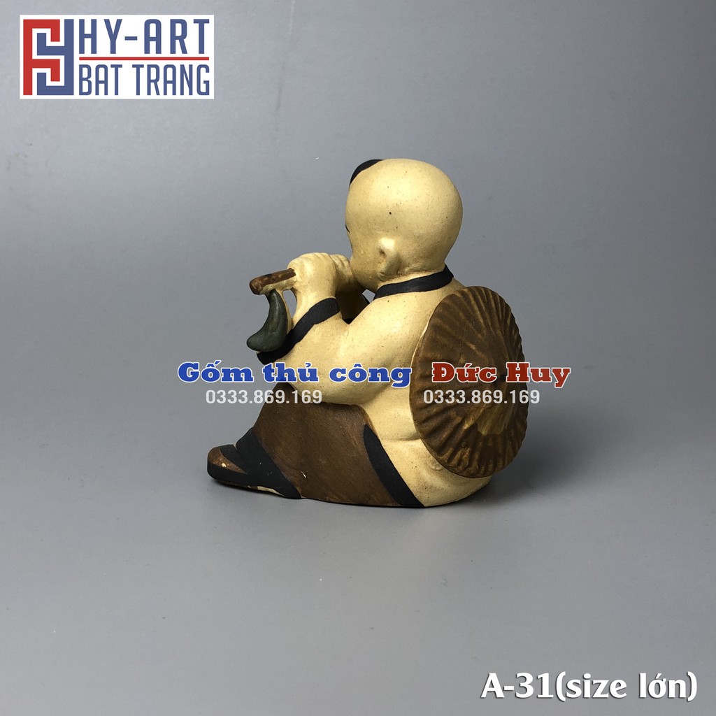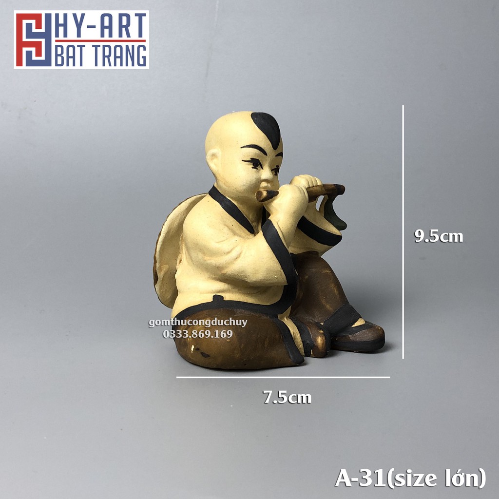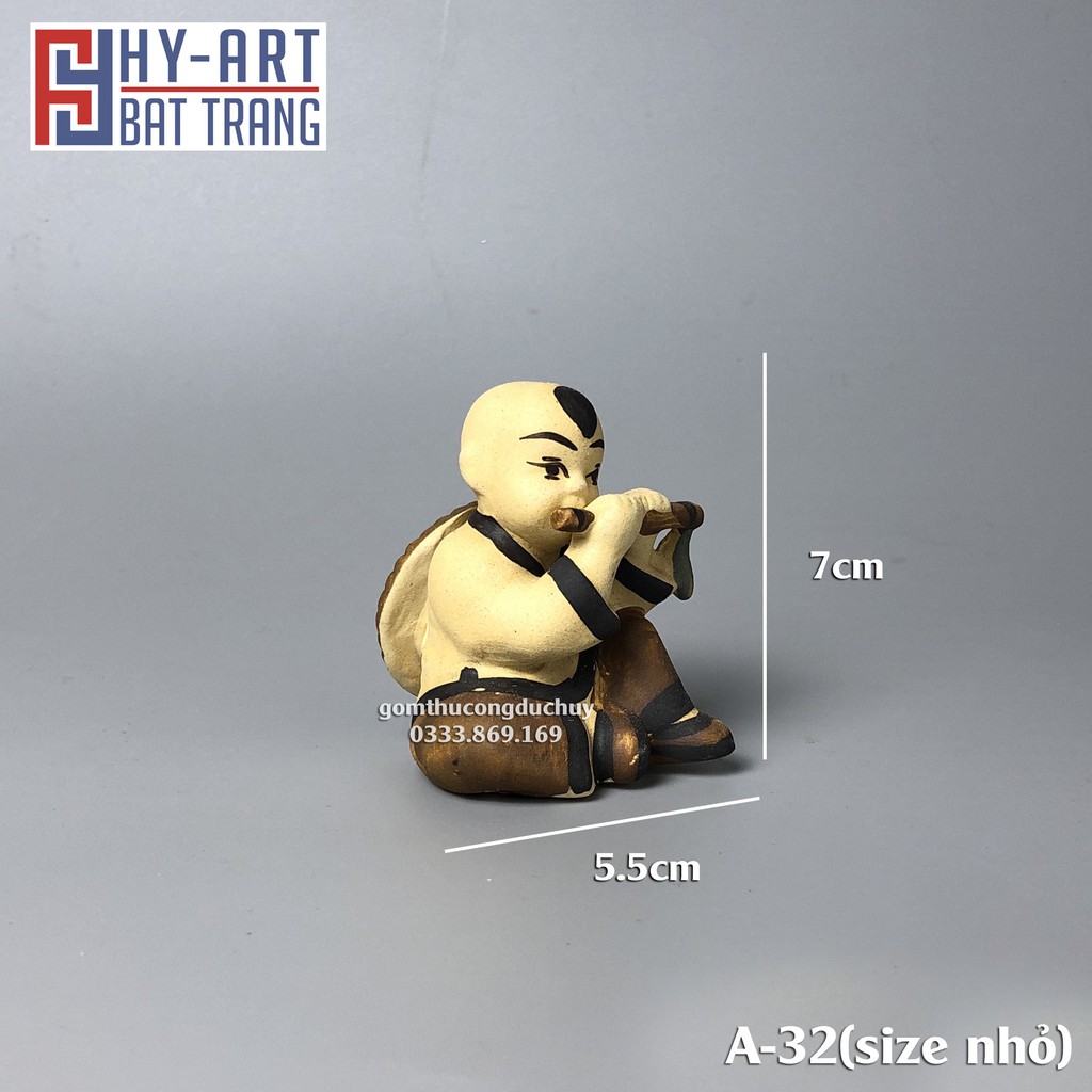 Tượng gốm Bé thổi sáo phụ kiện trang trí tiểu cảnh hòn non bộ bể cá chậu cây bonsai-Chất liệu: gốm đất nung (Hoàng Thổ) KHÔNG ĐỘC HẠI, KHÔNG GÂY Ô NHIỄM NƯỚC.