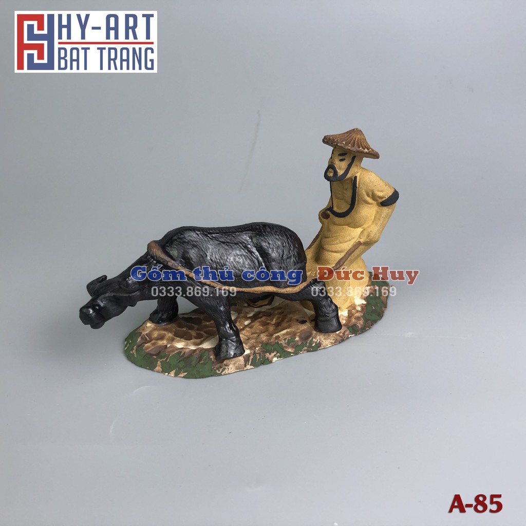 Tượng gốm lão nông cày ruộng phụ kiện trang trí tiểu cảnh hòn non bộ bể cá chậu cây bonsai-Chất liệu: gốm đất nung (Hoàng Thổ) KHÔNG ĐỘC HẠI, KHÔNG GÂY Ô NHIỄM NƯỚC.