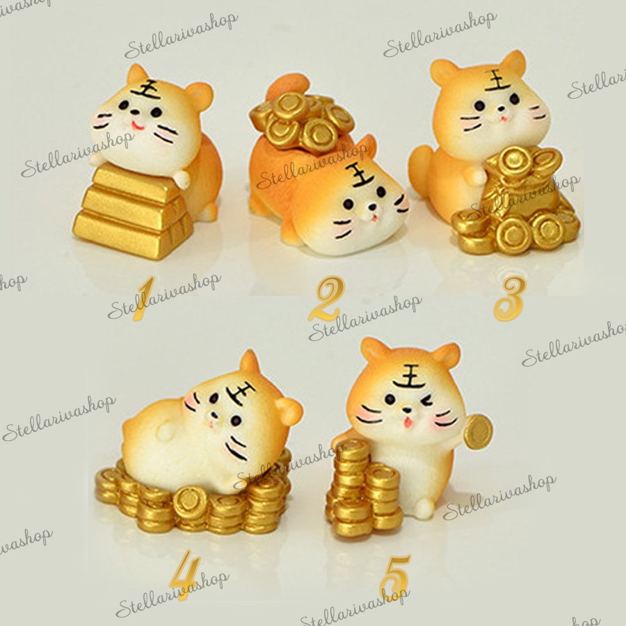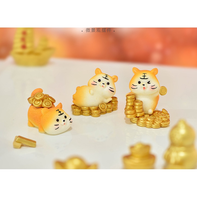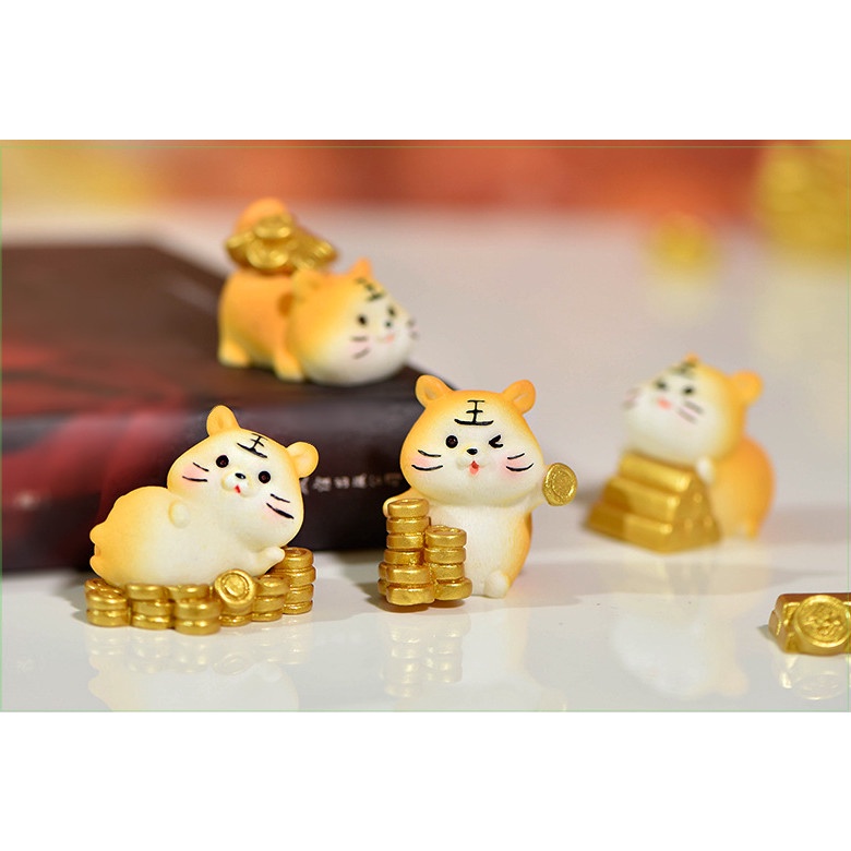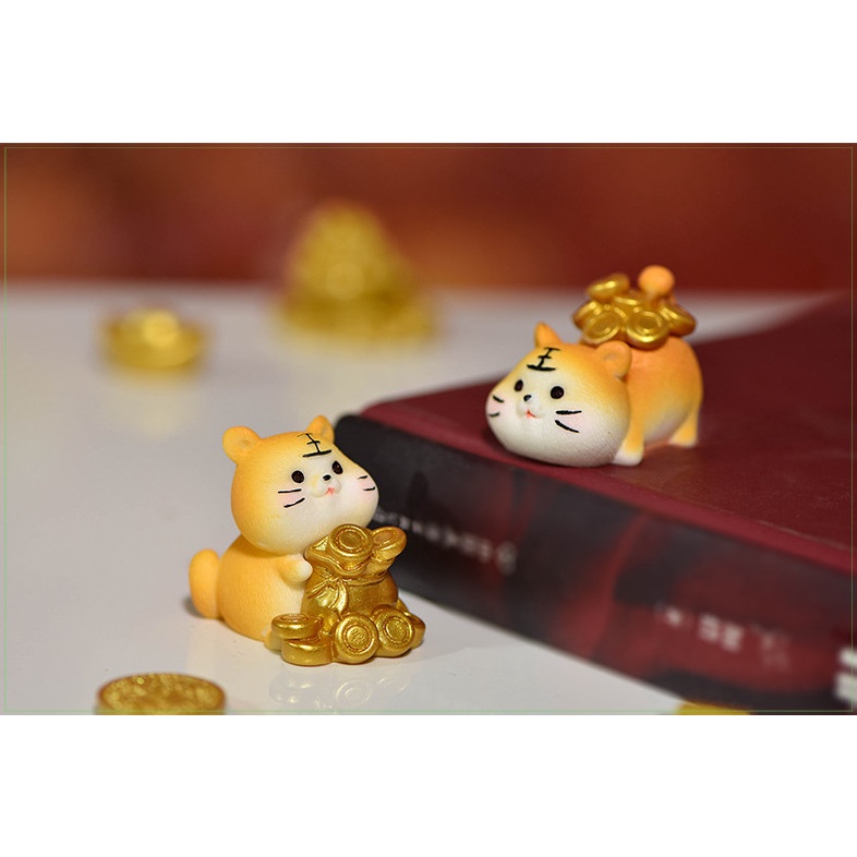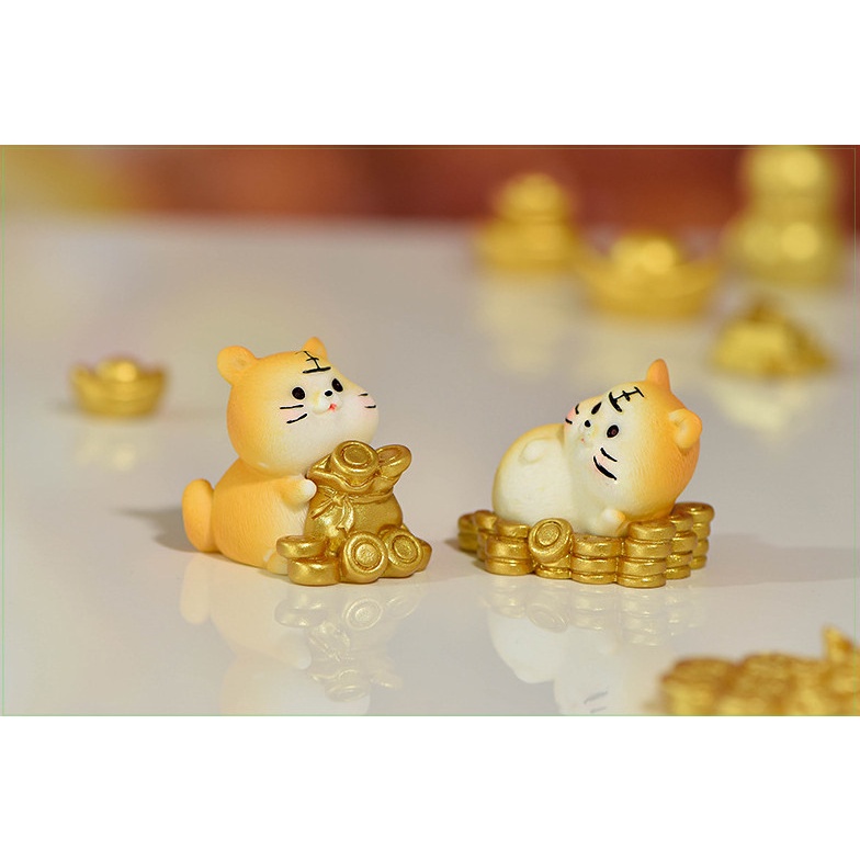 Tượng hổ ôm vàng may mắn trang trí tiểu cảnh cây mai, cây đào ngày TếtSize ~3.5-4.5cm