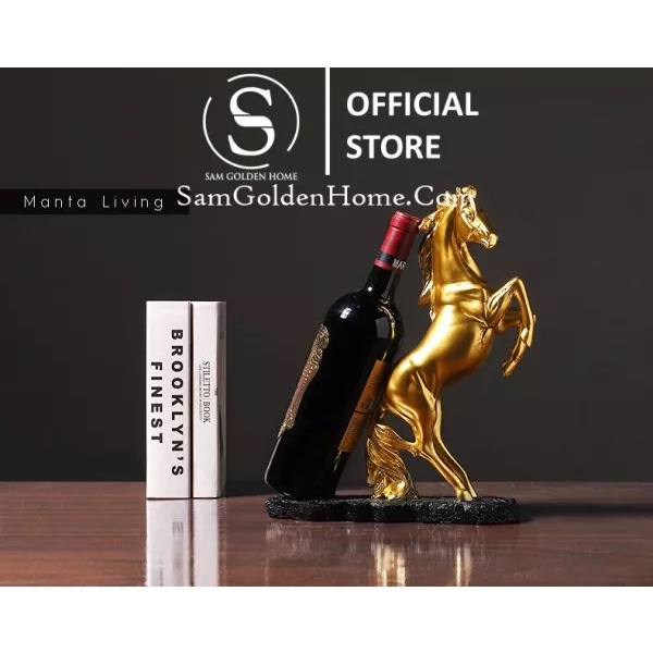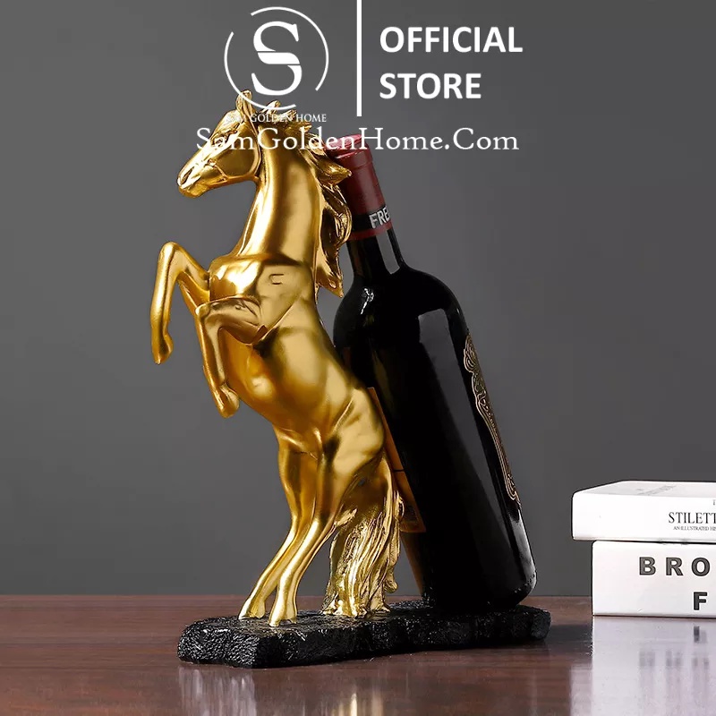 Tượng Ngựa Mạ Vàng Decor Nhà Cửa, Phòng Khách, Bàn Làm Việc Sang Trọng Kèm Đế Rượu