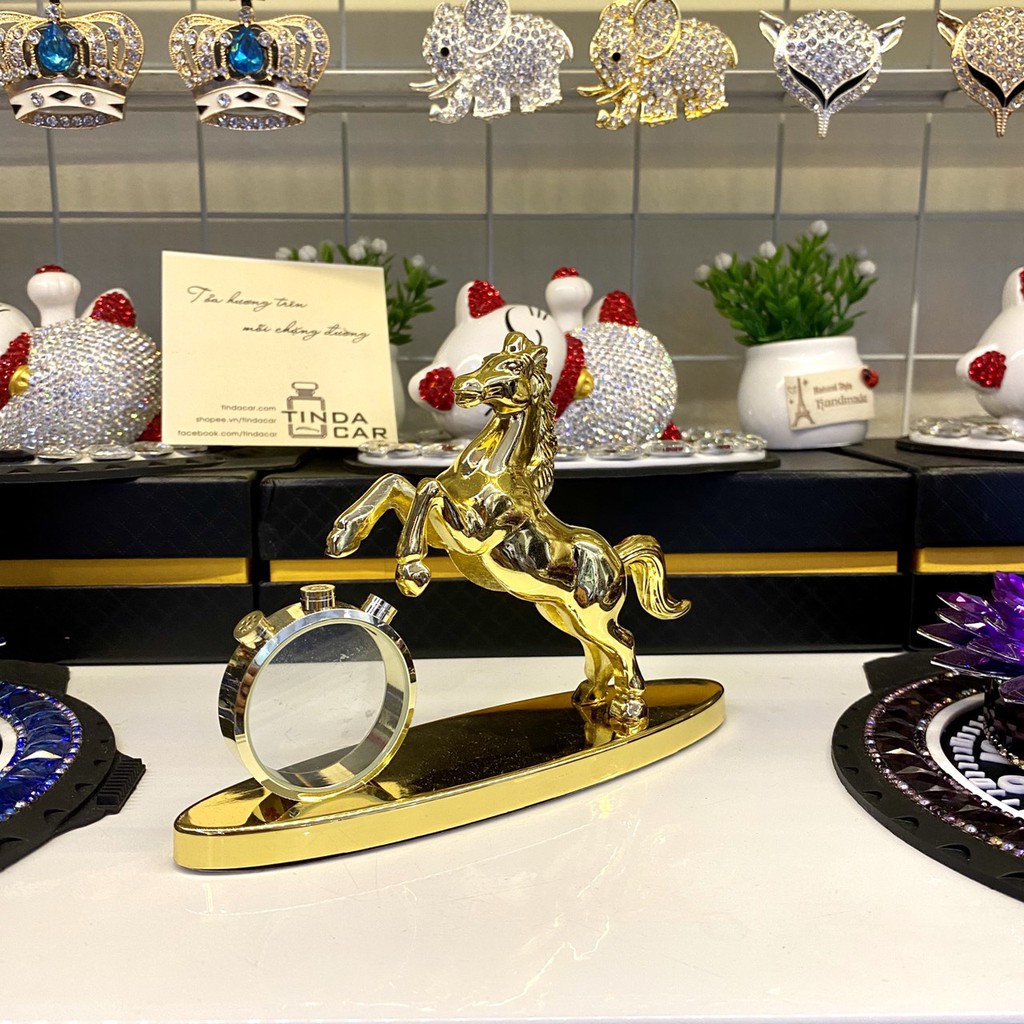 Tượng ngựa mạ vàng đồng tích hợp đồng hồ tiện lợi - tặng kèm nước hoa - mã đáo thành công