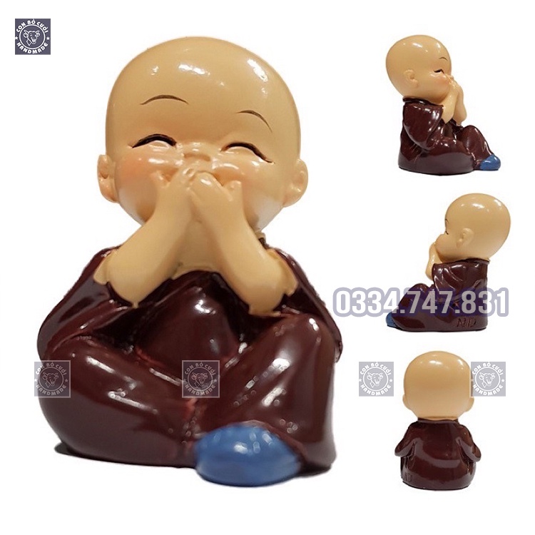 Giới thiệu Tượng phật mini gồm 4 tượng chú tiểu tứ không cao cấp để taplo ô tô hoặc để bàn làm việc trang trí tiểu cảnh tặng miếng