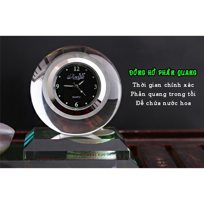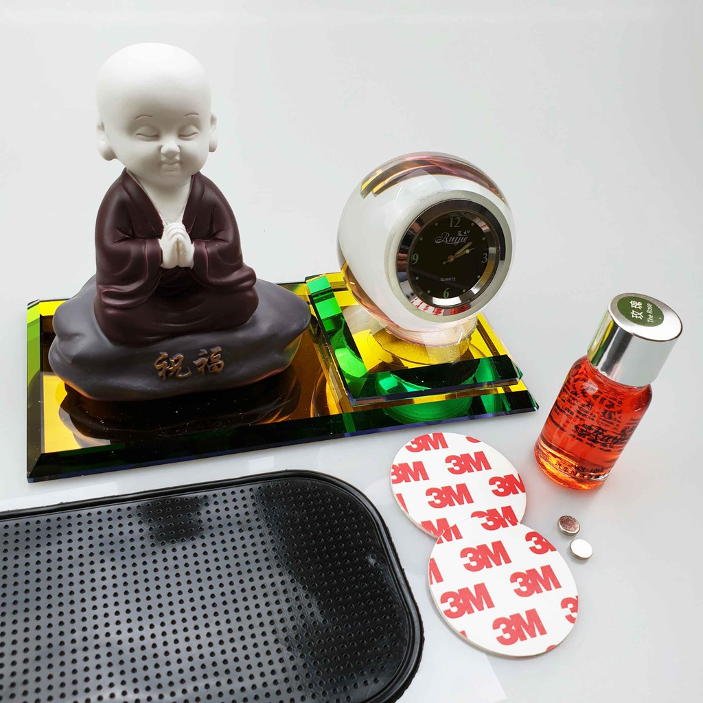 Bộ sản phẩm gồm:Tượng chú tiểu Chúc Phúc + Đồng hồ + Đế đựng nước hoa;