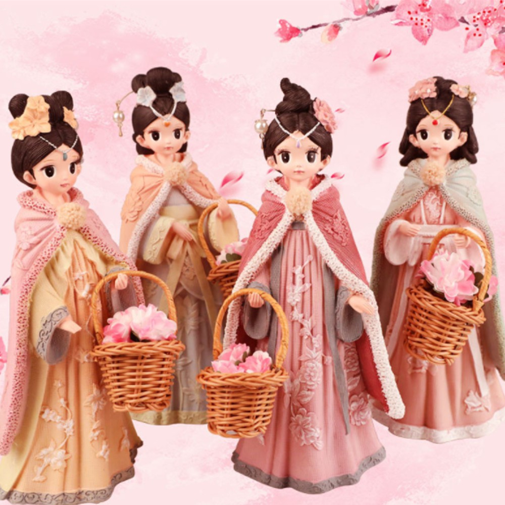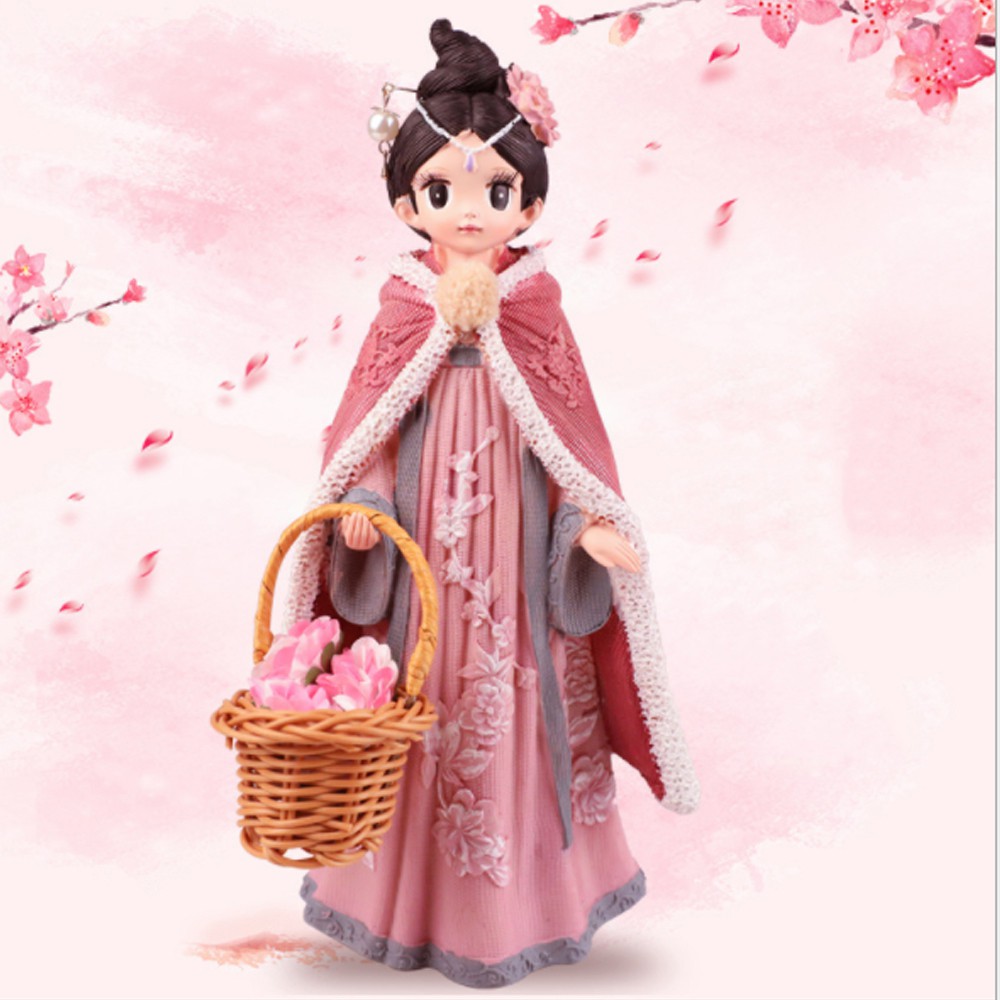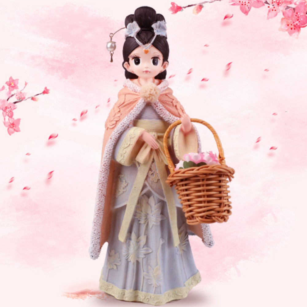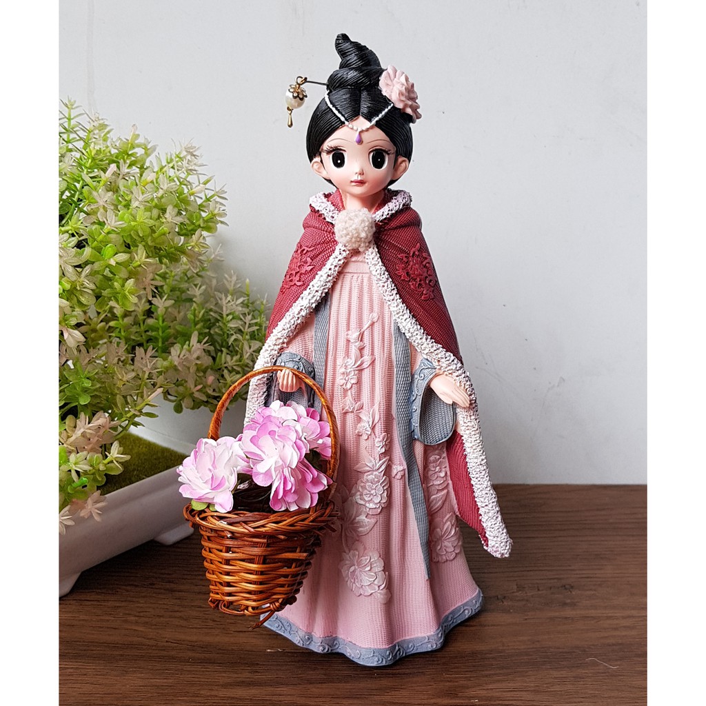 🎀Mẫu: Thiếu nữ cổ trang mặc áo choàng cầm giỏ hoa+ Kích thước: tượng cao 25cm