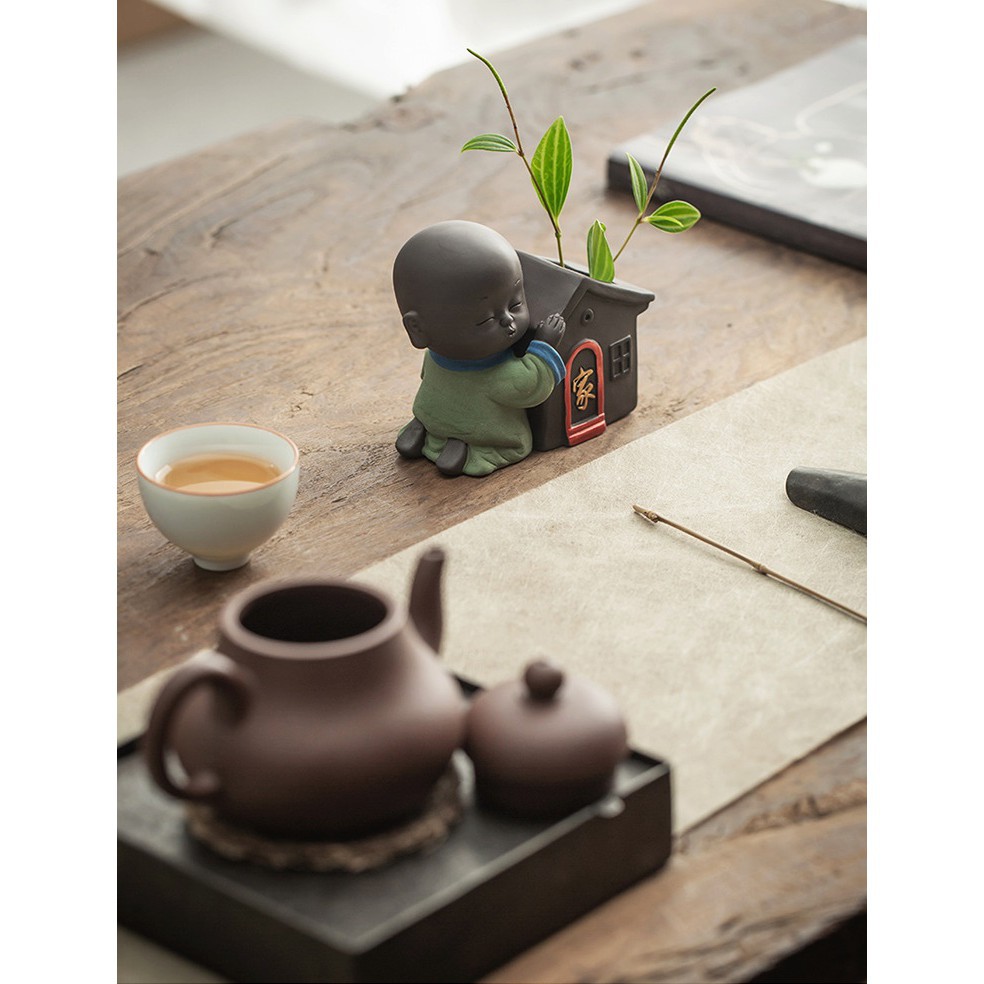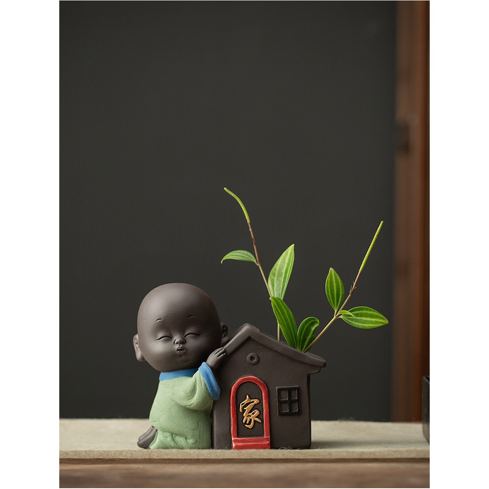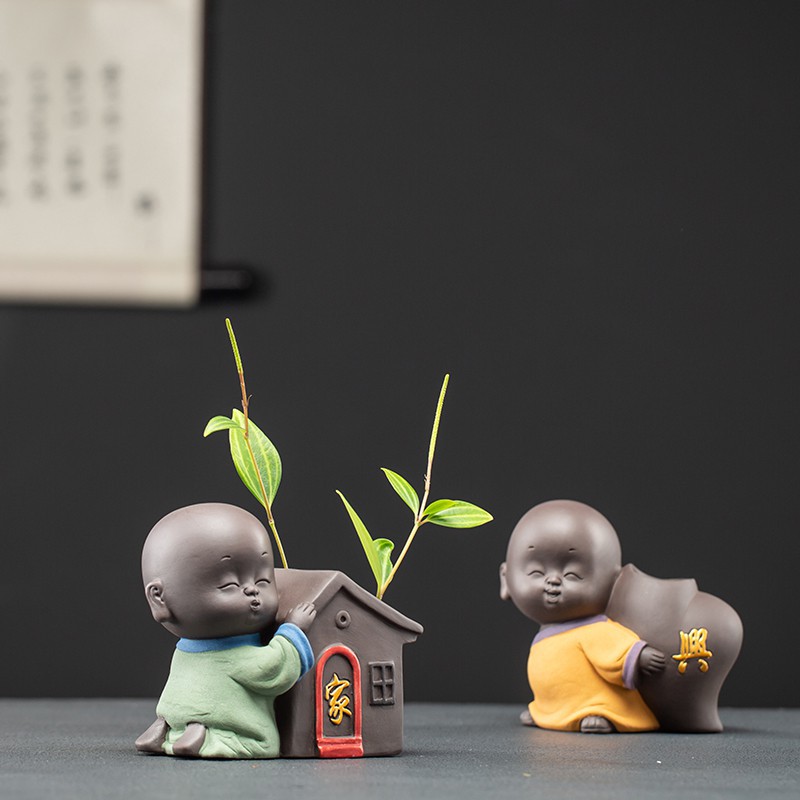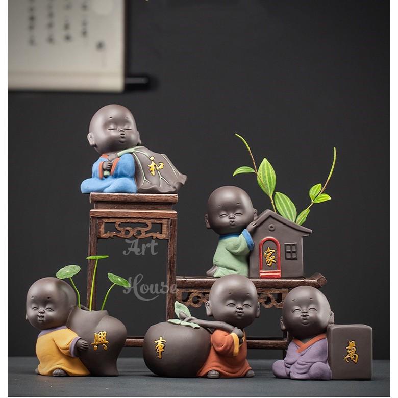 Tượng gốm với các chú tiểu vui tươi , có thể trang trí làm chậu hoa hay set tiểu cảnh rất dễ thương và đáng yêu. Chất liệu gốm cát đẹp.