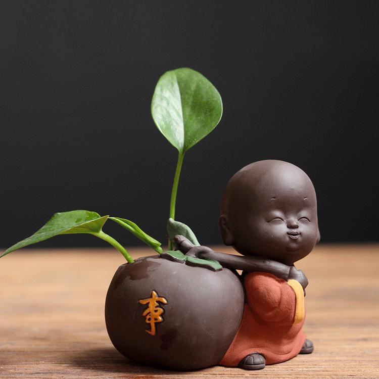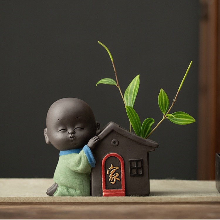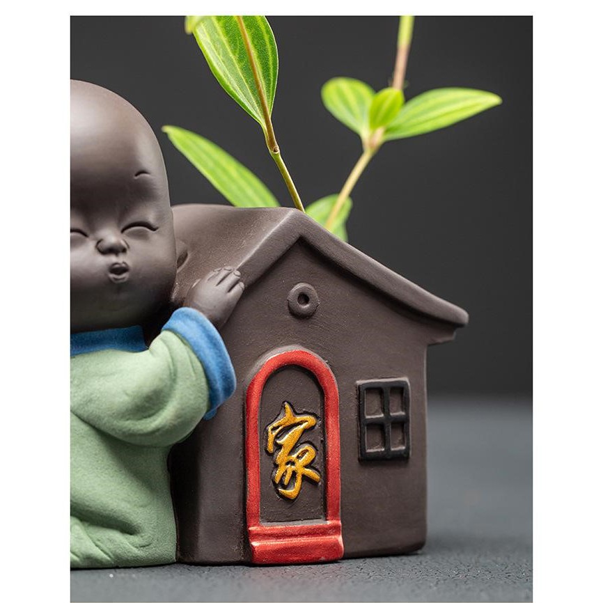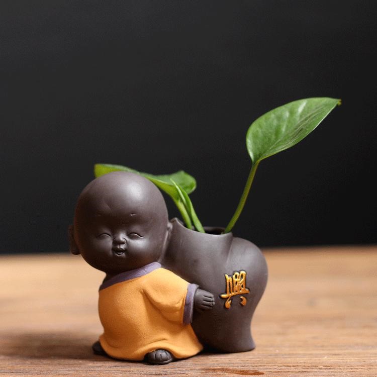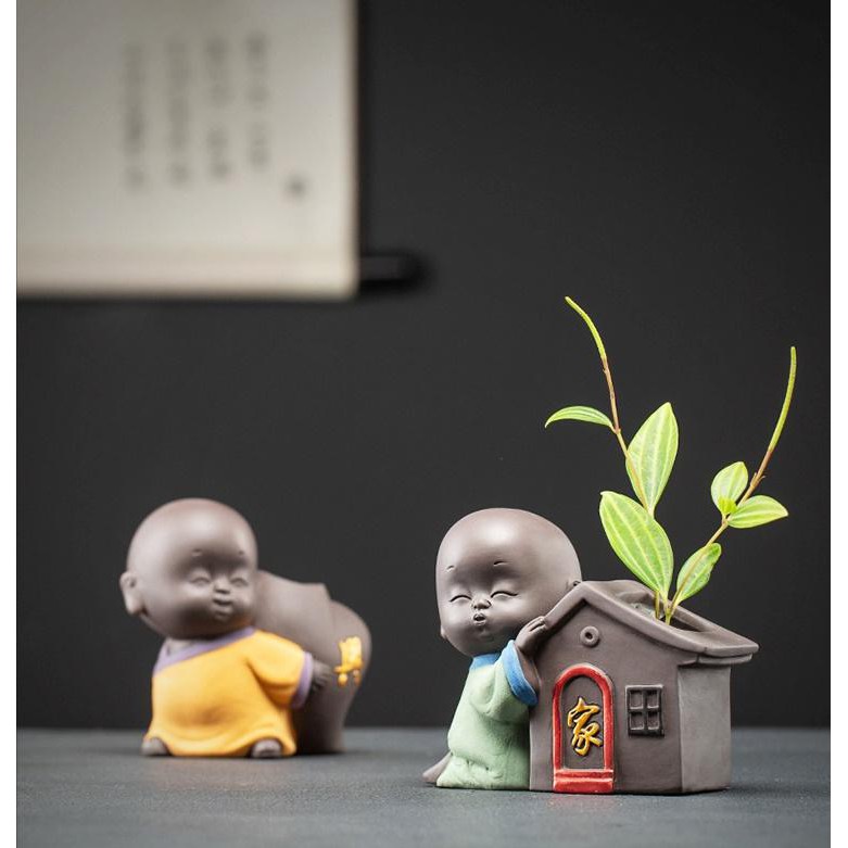 Tượng Tiểu Và Chậu Gốm Cầu Phúc 04Tượng gốm với các chú tiểu vui tươi , có thể trang trí làm chậu hoa hay set tiểu cảnh rất dễ thương và đáng yêu. Chất liệu gốm cát đẹp.