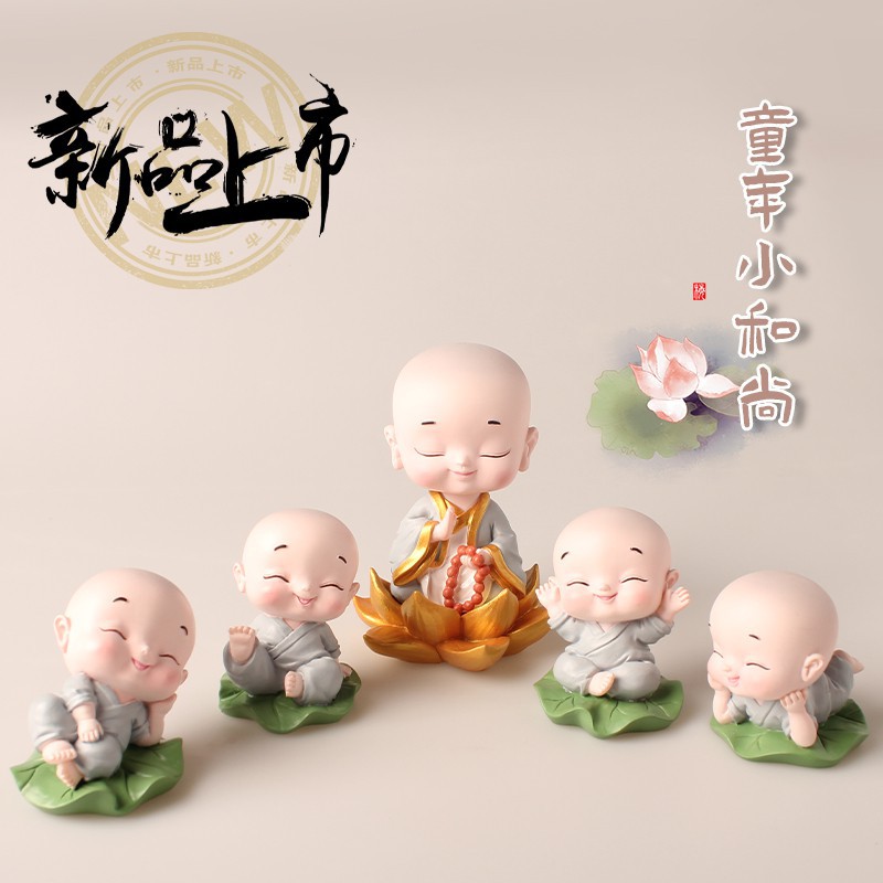 Bộ Tượng Tiểu Trên Lá Sen Xanh Trang Trí Ô Tô Tiểu CảnhBộ sàn phẩm gồm các chú tiểu ngồi lá sen