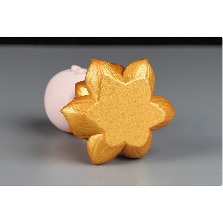 Giới thiệu Bộ Tượng Tiểu Vàng Trên Lá Sen Xanh Trang Trí Ô Tô Tiểu Cảnh
