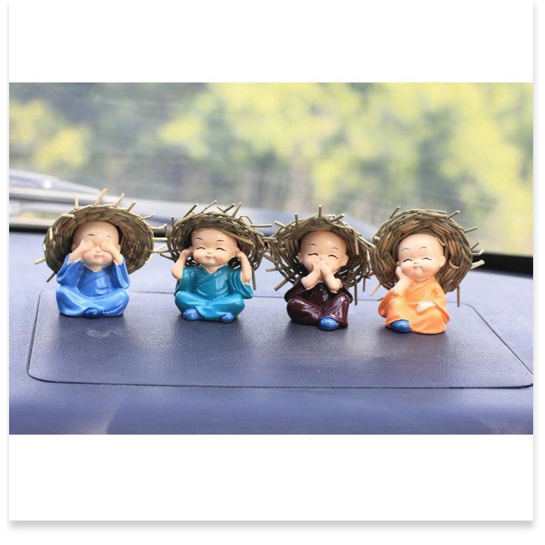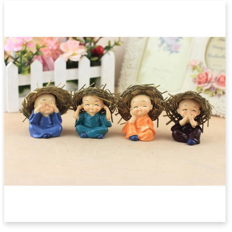 Tượng Chú Tiểu GIGAHOME Combo 4 Tượng Chú Tiểu Đội Nón Rơm Trang Trí Xe Hơi, Nhà Cửa 5325