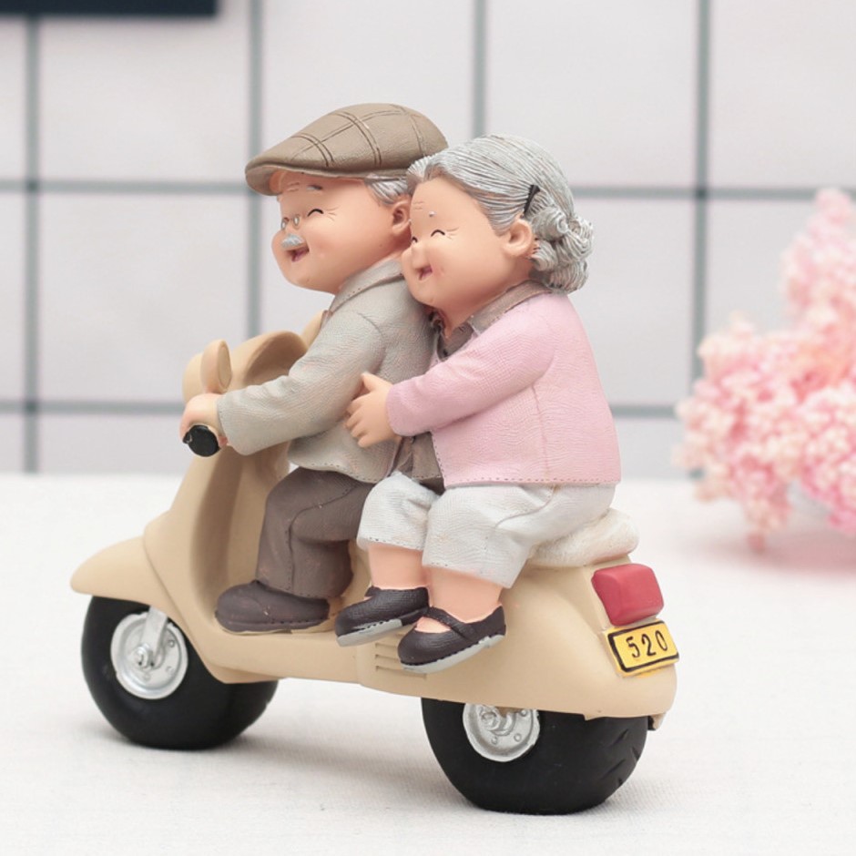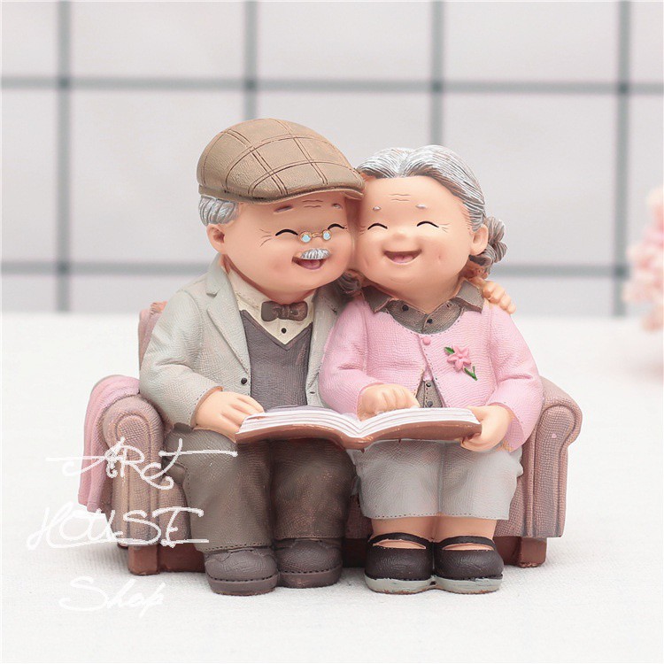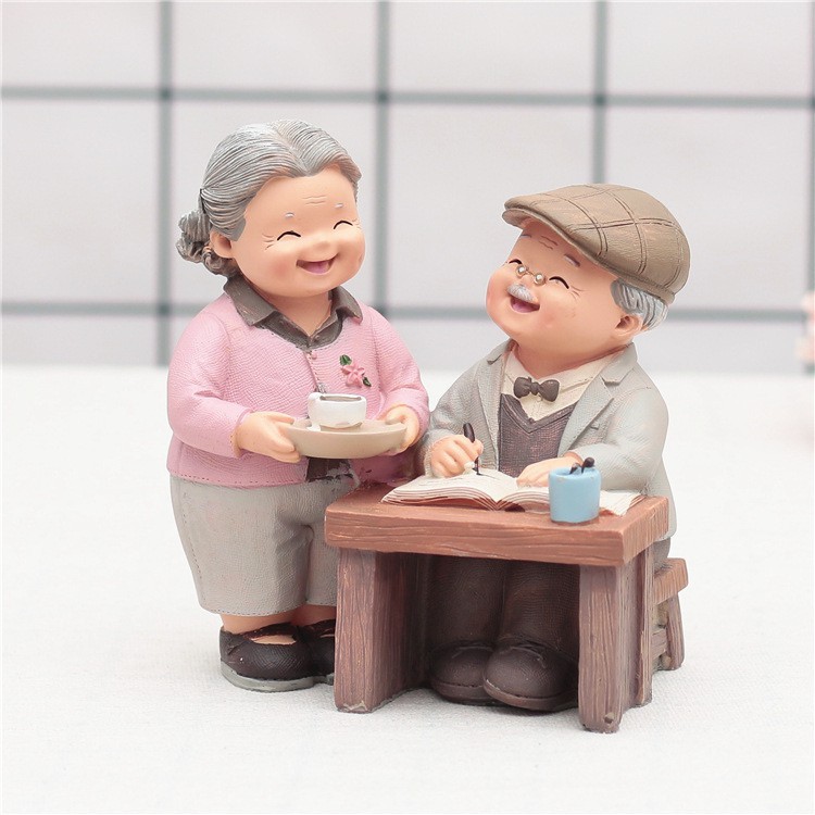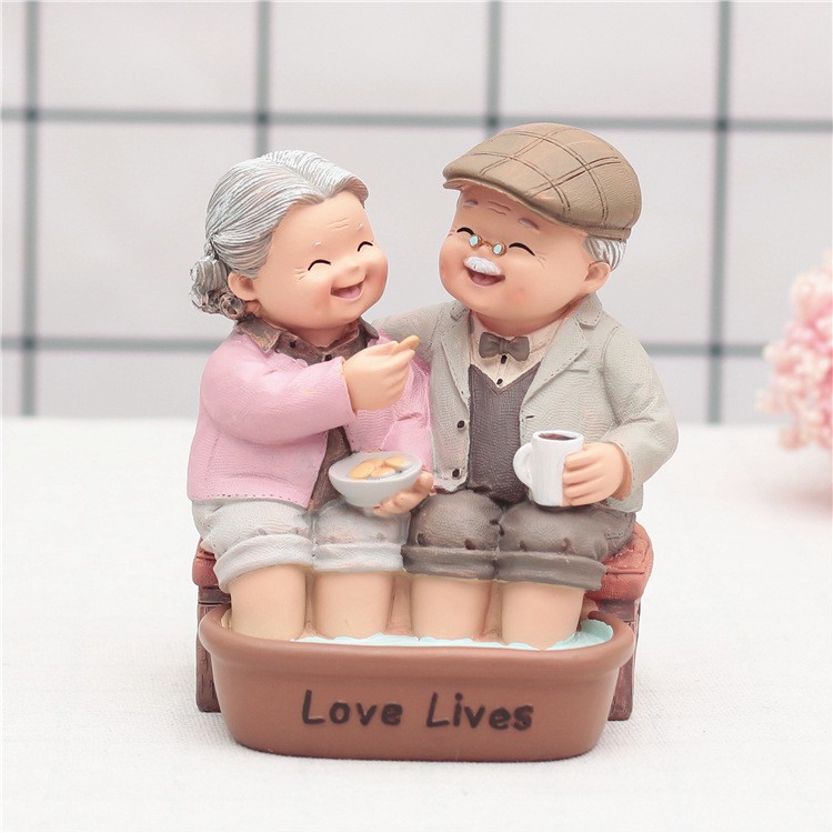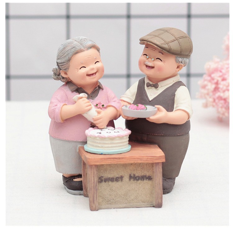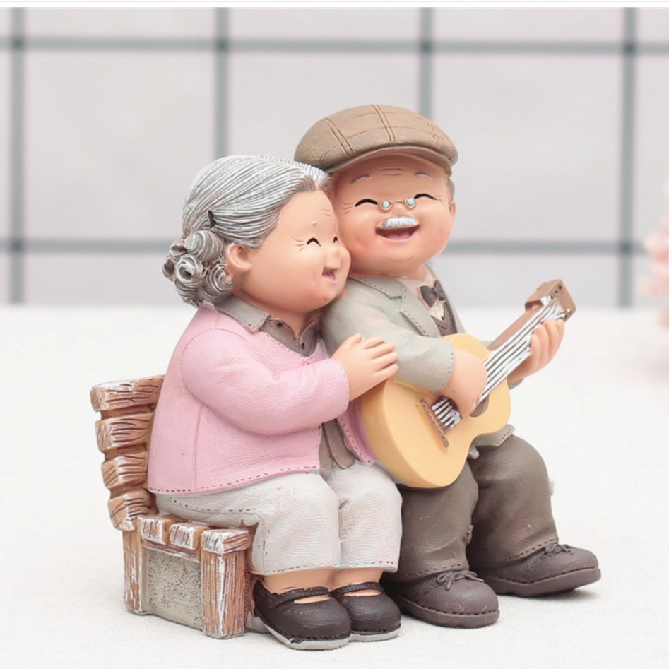 Bộ tượng khắc họa hình ảnh ông bà hết sức chân thực với những cử chỉ quan tâm mà ông bà dành cho nhau. Một tình yêu đẹp, bình dị nhưng xuất phát từ tấm lòng chân thành sẽ mang lại hạnh phúc tới đầu bạc răng nong.Chất liệu: nhựa cứng