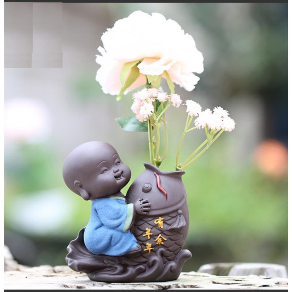 Nhà cửa & Đời sống > Làm vườn > Trang trí vườn || Tượng trồng cây chú tiểu cưỡi cá- Tượng trang trí để bànCòn hàng