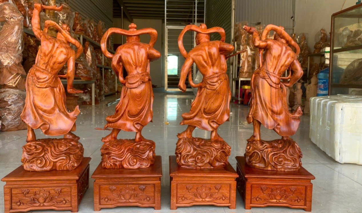_ Bộ tượng tứ đại kim cương được làm bằng chất liệu gỗ hương đá liền khối tự nhiên 100%