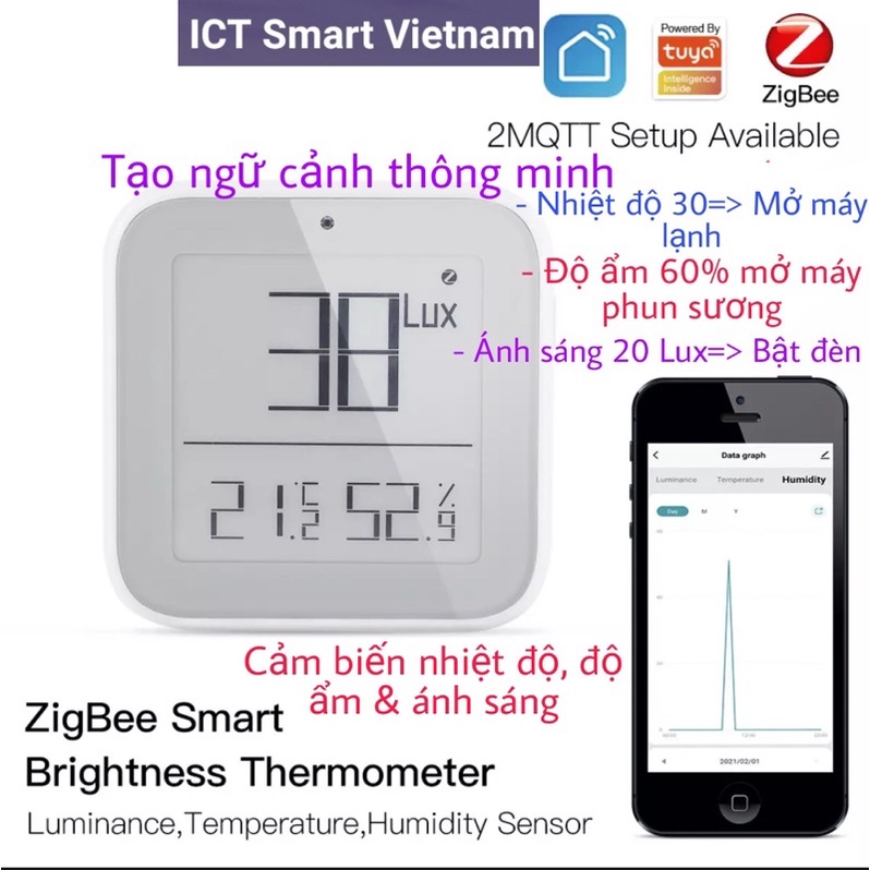 Giới thiệu ( Tuya Zigbee) Cảm biến nhiệt độ, độ ẩm & ánh sáng Tuya. Kết nối Zigbee 3.0