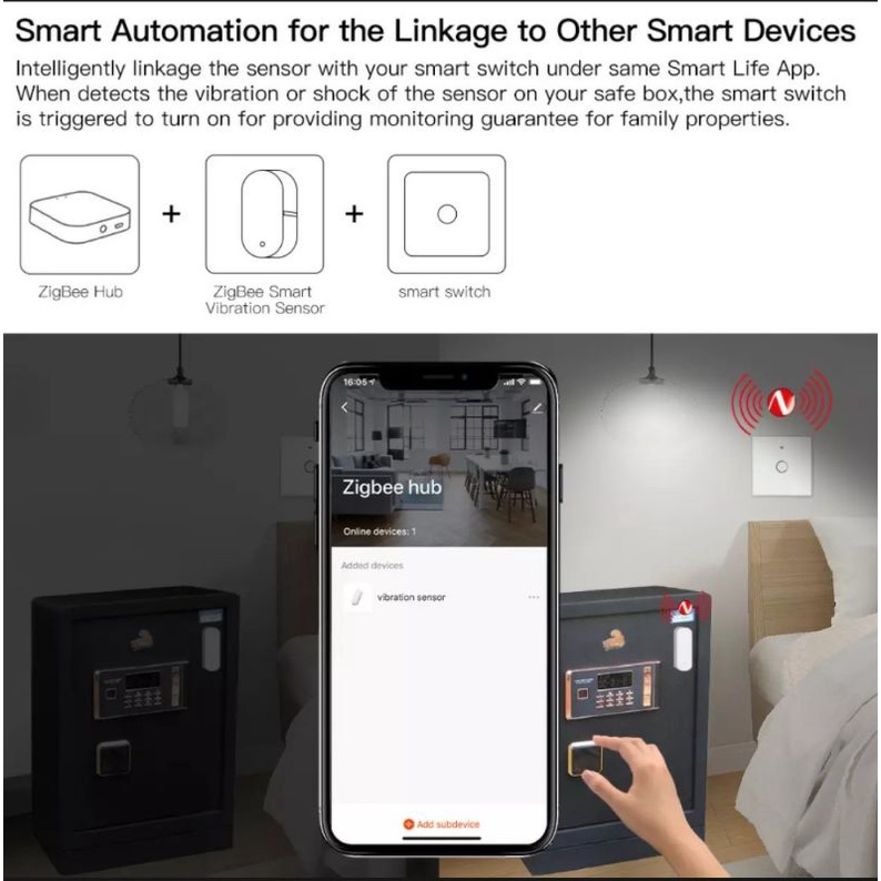 Khách hàng chú ý: Sản phẩm kết nối Zigbee vì vậy bạn cần trang bị hub trung tâm Tuya Zigbee. Nếu bạn chưa có hub có thể tham khảo hub Tuya Zigbee của shop.Bảo vệ ngôi nhà của bạn với cảm biến rung Tuya zigbee. Khi bạn vắng nhà chỉ cần có kẻ đột nhập qua cửa sổ hoặc cửa trên mái nhà, ngay lập tức đẩy thông báo về điện thoại của bạn.