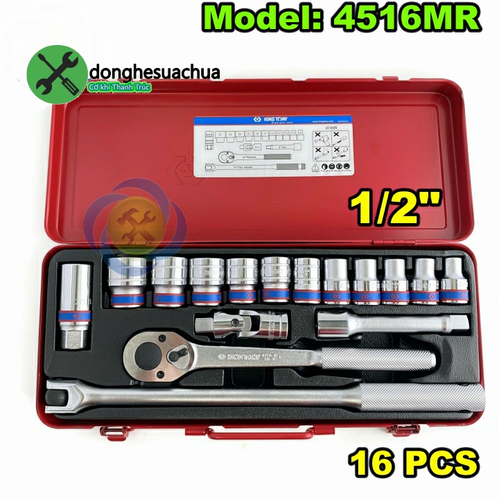 Nhà cửa & Đời sống > Dụng cụ & Thiết bị tiện ích > Dụng cụ > Hộp dụng cụ cầm tay || Bộ tuýp 1/2 Kingtony 4516MR 10-27mm 6 cạnh gồm 16 chi tiếtCòn hàng