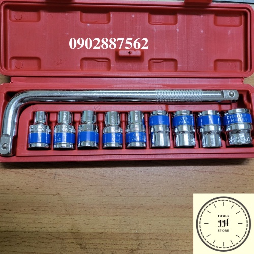 bộ tuýp 10 món cần cong L hộp đỏ đầu vuông 1/2 (8-24mm)