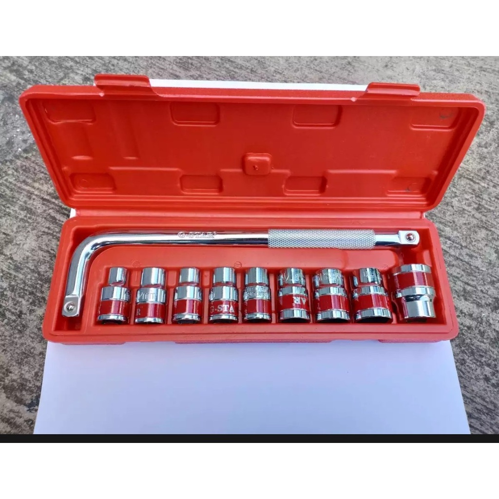Nhà cửa & Đời sống > Dụng cụ & Thiết bị tiện ích > Dụng cụ > Hộp dụng cụ cầm tay || Bộ túyp 10 món cần L hộp nhựa cao cấpCòn hàng
