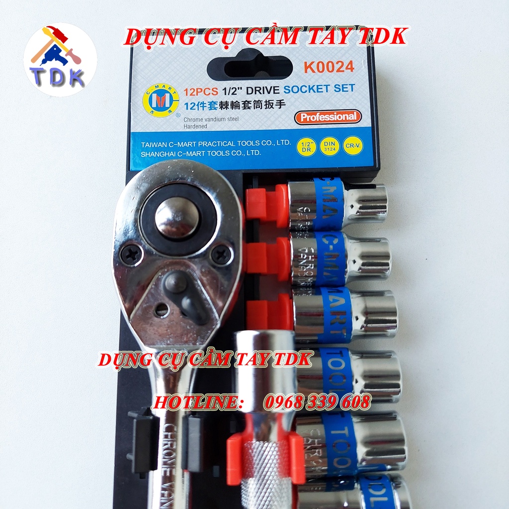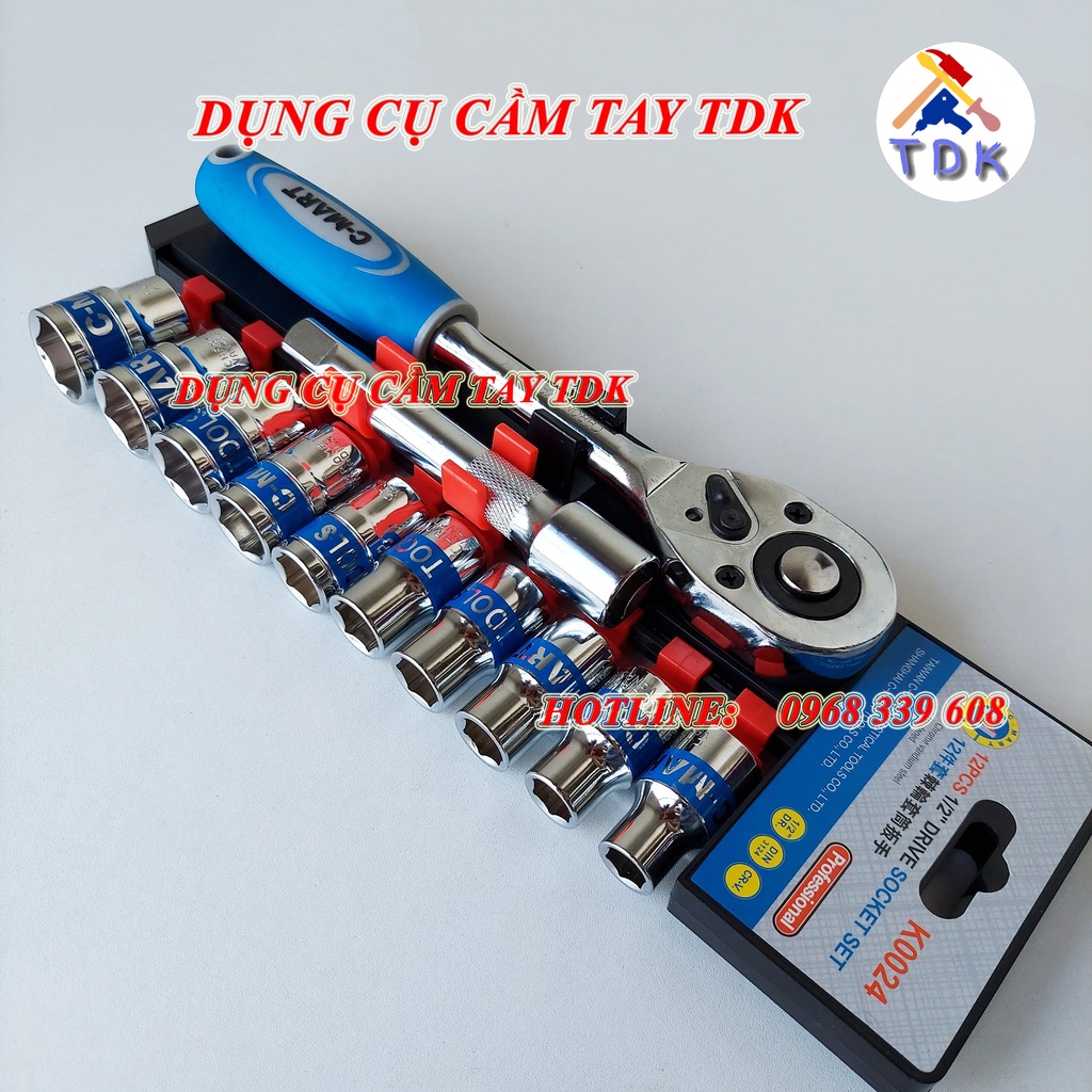 Bộ tuýp 12 chi tiết bằng thép CR-V cao cấp K0024 CMART, bộ khẩu sửa chữa xe máyMã sản phẩm: K0024