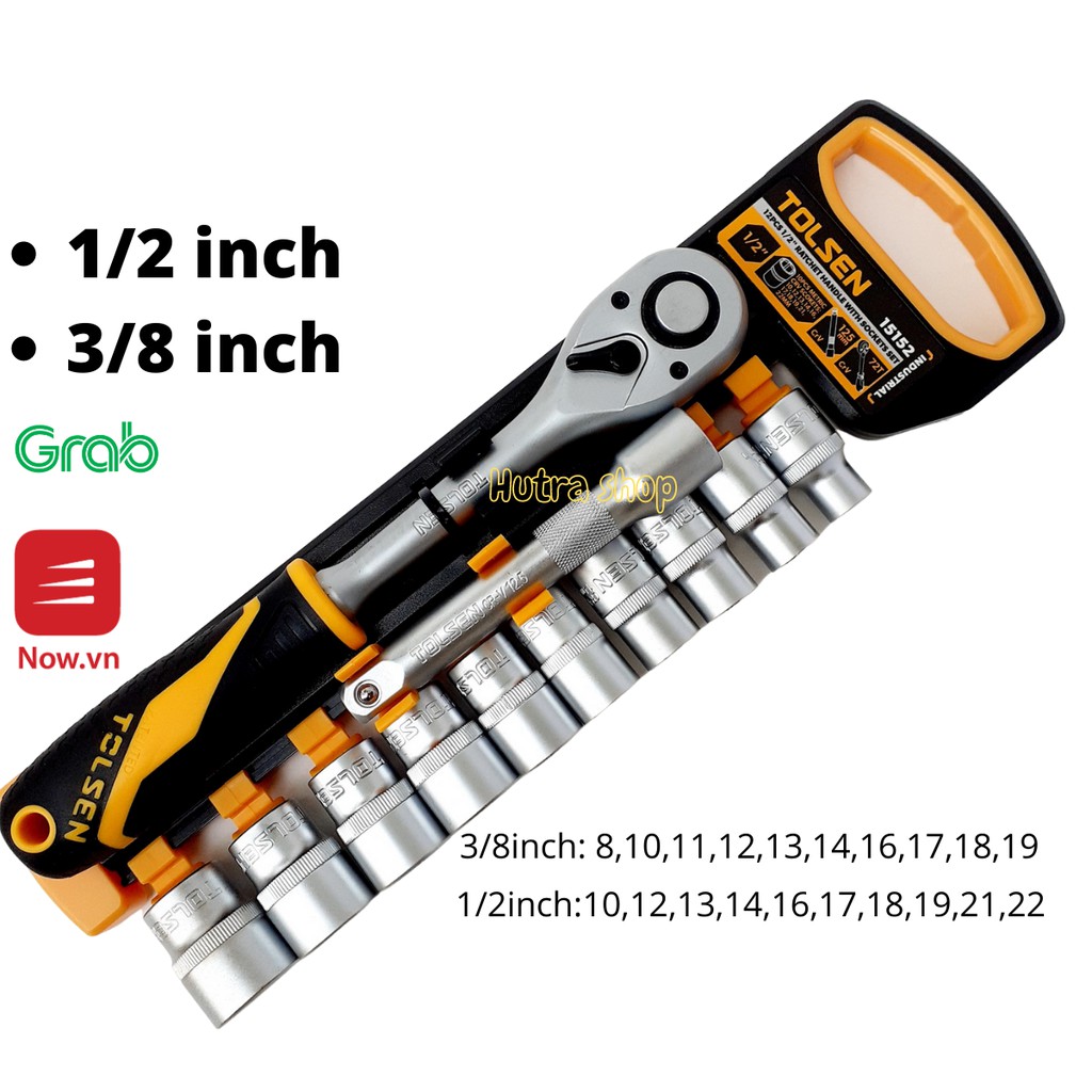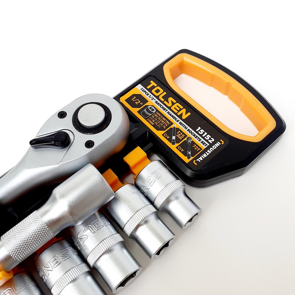 Đặc biệt với bộ tuýp cần tự động Tolsen có độ cứng tốt sẽ không gây hiện trượt phá hủy đầu lục giác của bu lông và đai ốc. Với cần xiết đảo chiều được bọc nhựa mềm TPR cho cảm giác thoải mái khi cầm và khi dùng lực mạnh, chống trơn trượt. Các đầu tuýp hay đầu khẩu mở ốc từ 10mm đến 22mm bộ 1/2" và đầu tuýp 8mm đến 19mm (bộ 3/8").