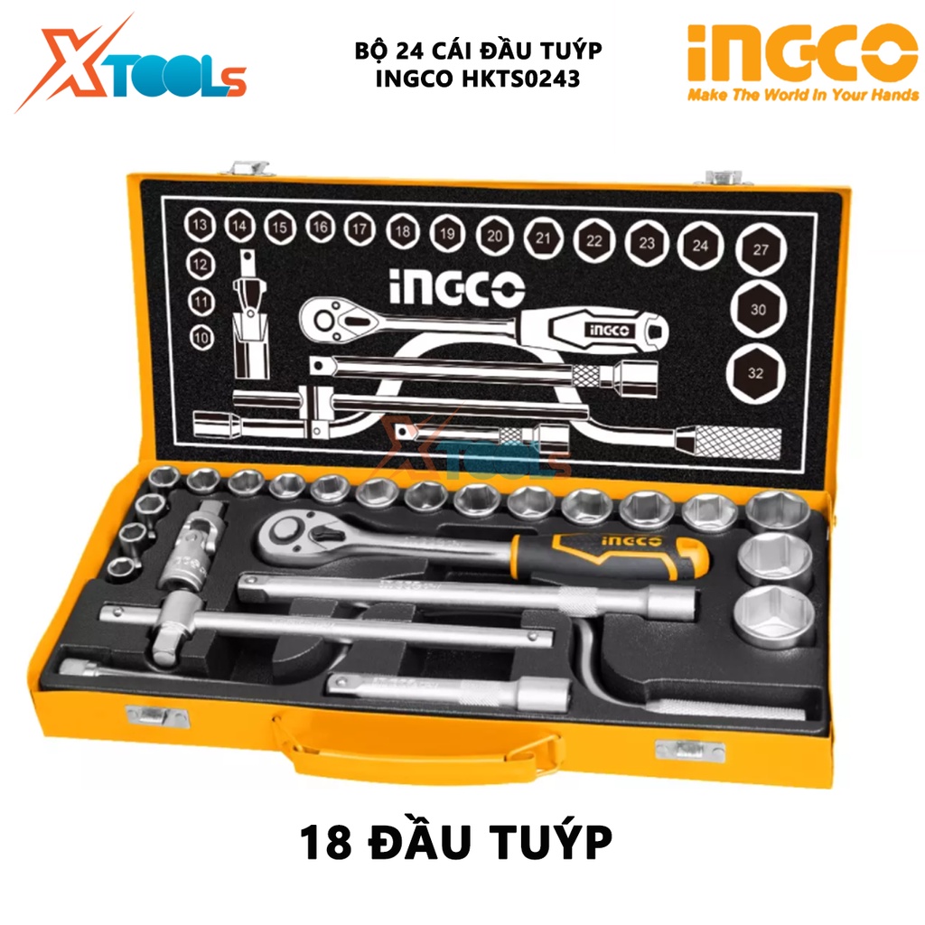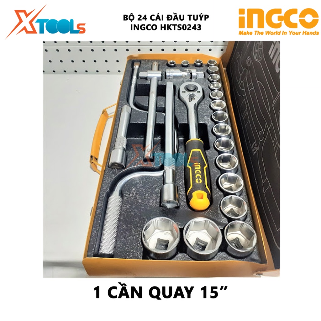 - 1/2" Bộ tuýp 24 chi tiết INGCO HKTS0243 là dụng cụ sửa chữa tiêu thụ rất mạnh tại Việt Nam và nhận được sự quan tâm của đông đảo người dùng. Đối với những người thợ chuyên nghiệp, INGCO là cái tên hoàn toàn không xa lạ vì đây chính là thương hiệu chuyên sản xuất các loại dụng cụ, thiết bị dân dụng và công nghiệp uy tín hàng đầu của Trung Quốc hiện nay.