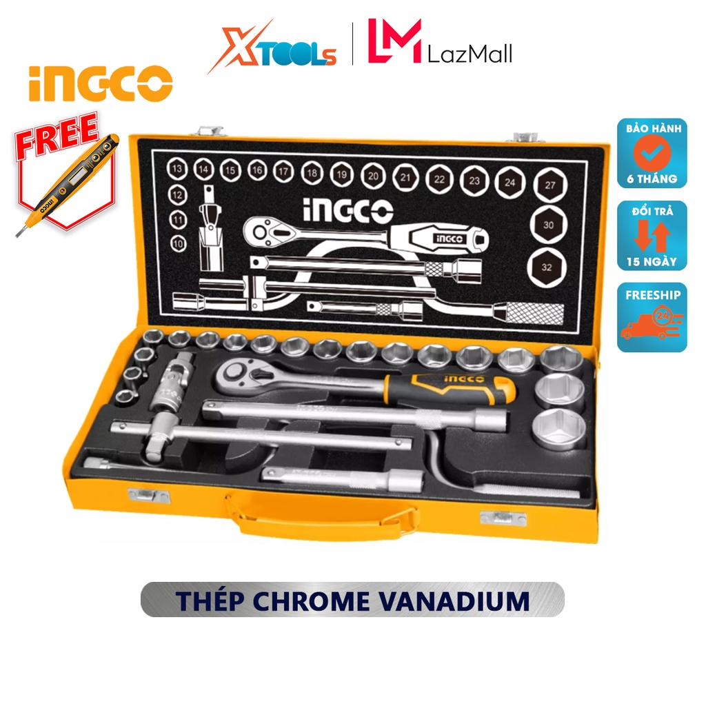 Nhà cửa & Đời sống > Dụng cụ & Thiết bị tiện ích > Dụng cụ > Hộp dụng cụ cầm tay || Bộ tuýp 24 chi tiết INGCO HKTS0243 | Bộ 24 cái đầu tuýpCòn hàng