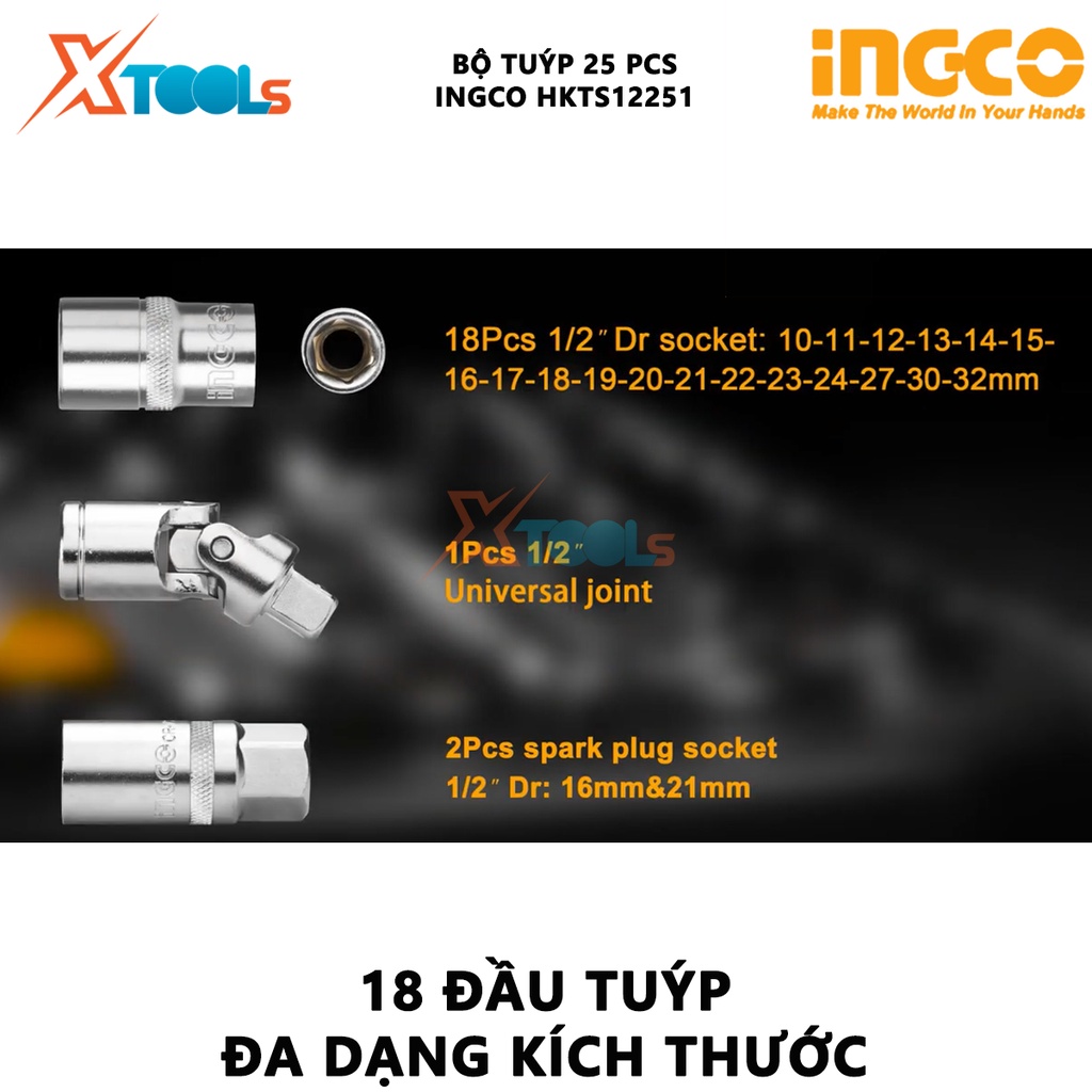 - Bộ tuýp đa năng 25 chi tiết INGCO HKTS12251 là dụng cụ sửa chữa tiêu thụ rất mạnh tại Việt Nam và nhận được sự quan tâm của đông đảo người dùng. Đối với những người thợ chuyên nghiệp, INGCO là cái tên hoàn toàn không xa lạ vì đây chính là thương hiệu chuyên sản xuất các loại dụng cụ, thiết bị dân dụng và công nghiệp uy tín hàng đầu của Trung Quốc hiện nay.