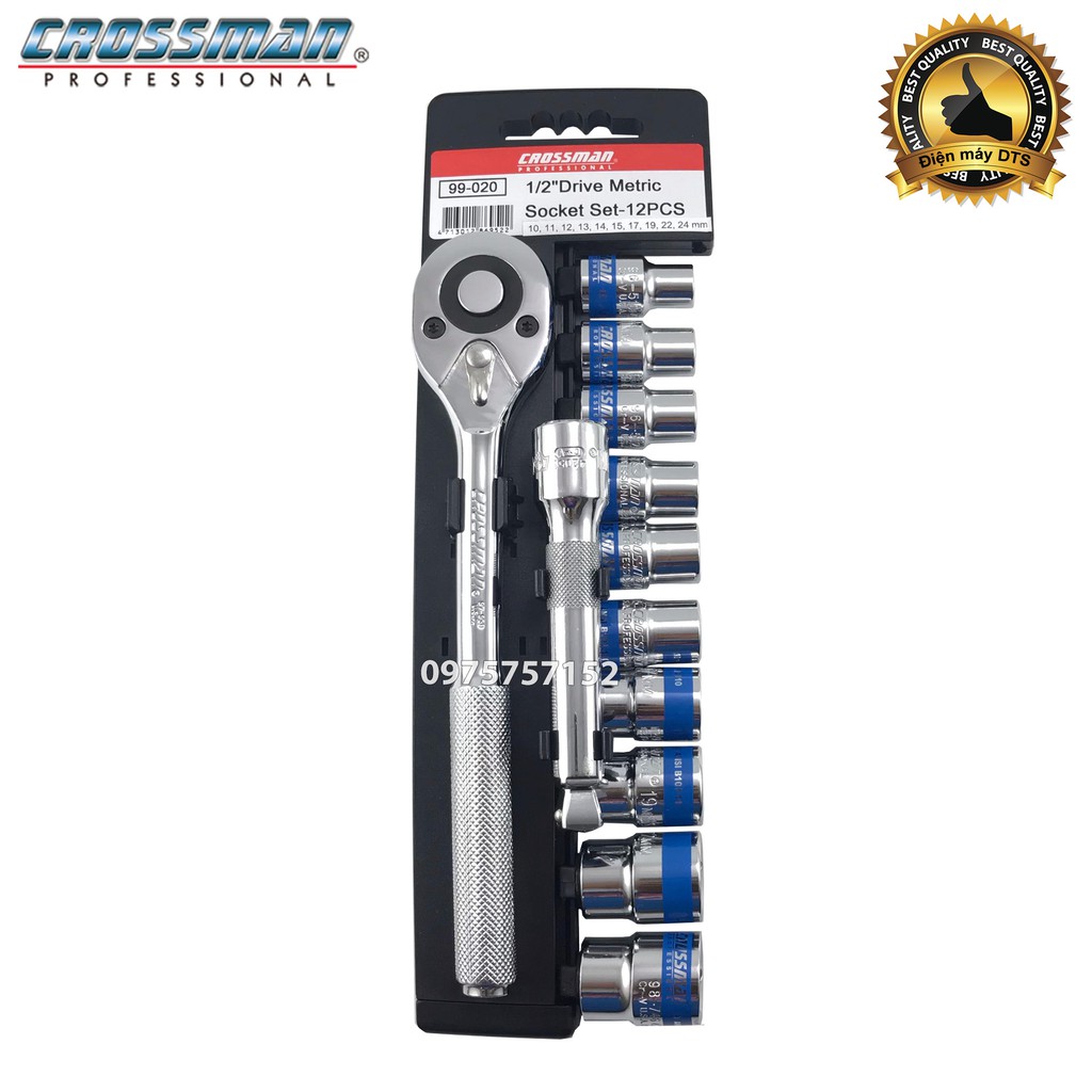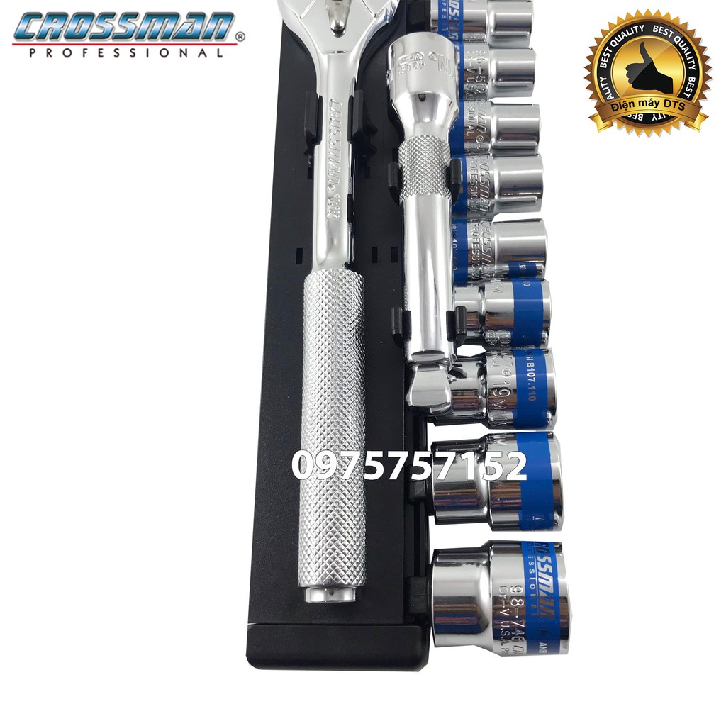 Bộ tuýp - Bộ khẩu 12 chi tiết thép Cr-V cao cấp (Cần tự động) Crossman U.S.A 99-020 (Chính hãng)