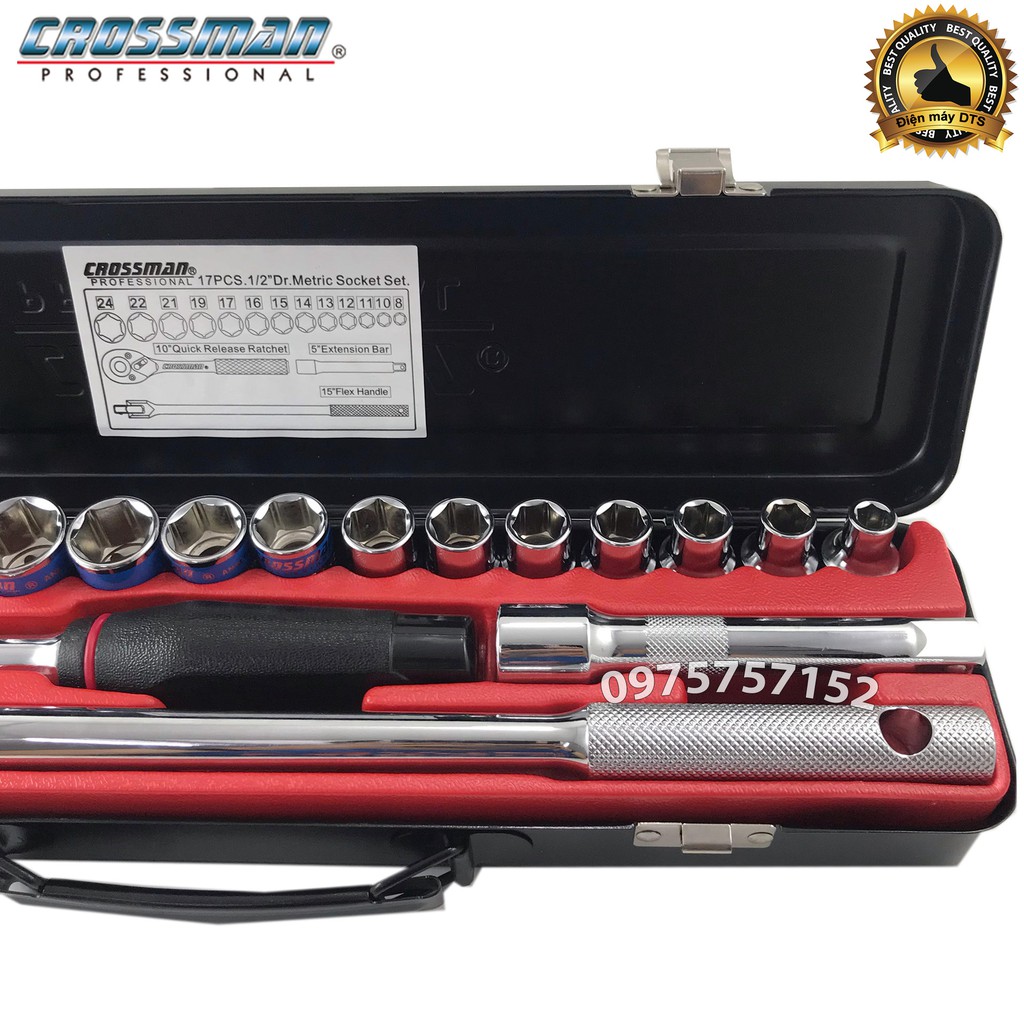 Bộ tuýp - Bộ khẩu 17 chi tiết thép Cr-V cao cấp (Cần tự động) Crossman U.S.A (Chính hãng) (Hộp đựng sắt)