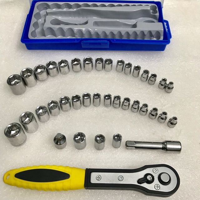 Nhà cửa & Đời sống > Dụng cụ & Thiết bị tiện ích > Dụng cụ > Hộp dụng cụ cầm tay || Bộ tuýp bộ khẩu sửa chữa 38 chi tiết thép CR-VCòn hàng