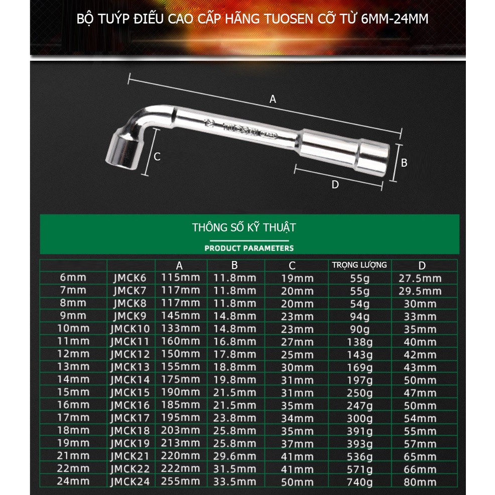 Giới thiệu Tuýp điếu cao cấp hãng TUOSEN, Cờ lê chữ L đủ size từ 6mm đến 22mm