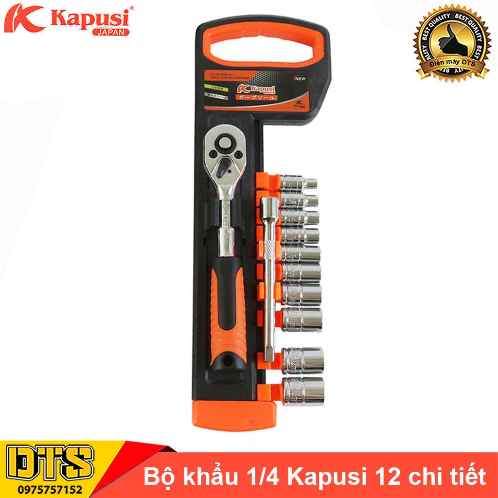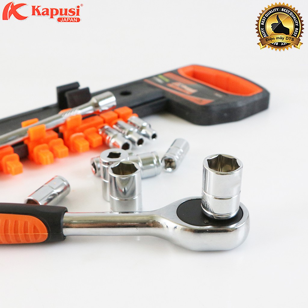 Bộ tuýp sửa chữa - bộ khẩu 1/4 cần tự động 12 chi tiết Kapusi Japan, thép CRV cao cấp
