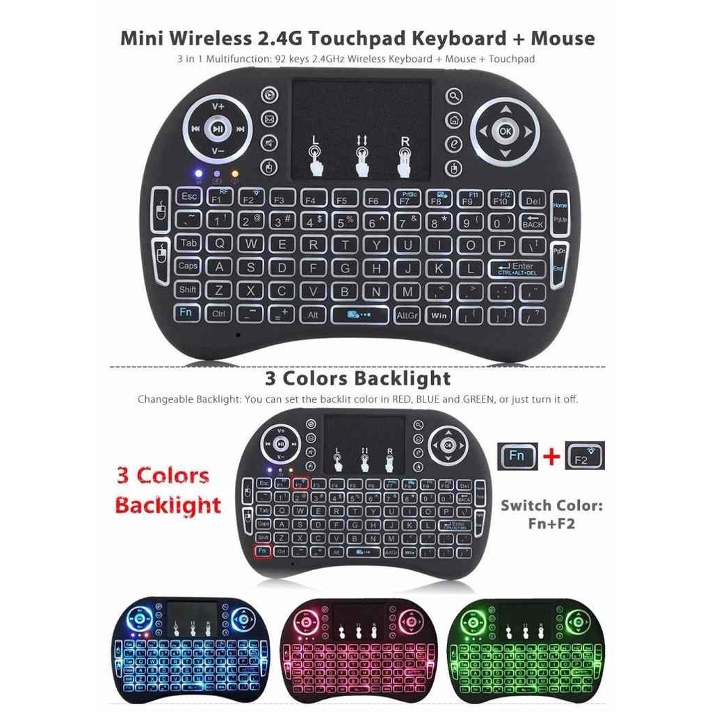 ***Giới thiệu sản phẩm bàn phím không dây nhiều màu kiêm chuột cảm ứng đa năng wireless 2.4gh