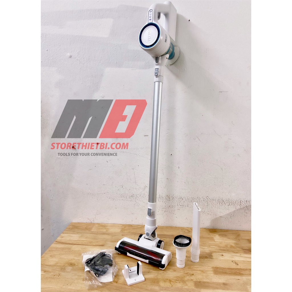 Phụ kiện: 1 ống kim loại, 1 sạc và móc nhựa 1 vòi phun kẽ hở, 1 chiếc bàn chải sofa