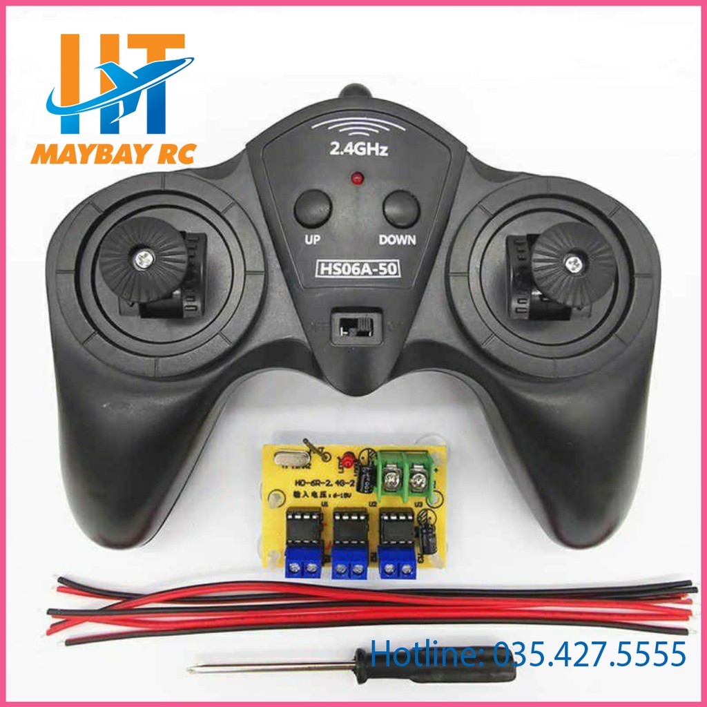 Tx Rx 3 kênh 6-15vBộ điều khiển từ xa 3 kênh chạy điện 6-15V, Sóng 2.4Ghz, Tầm xa ~50m.