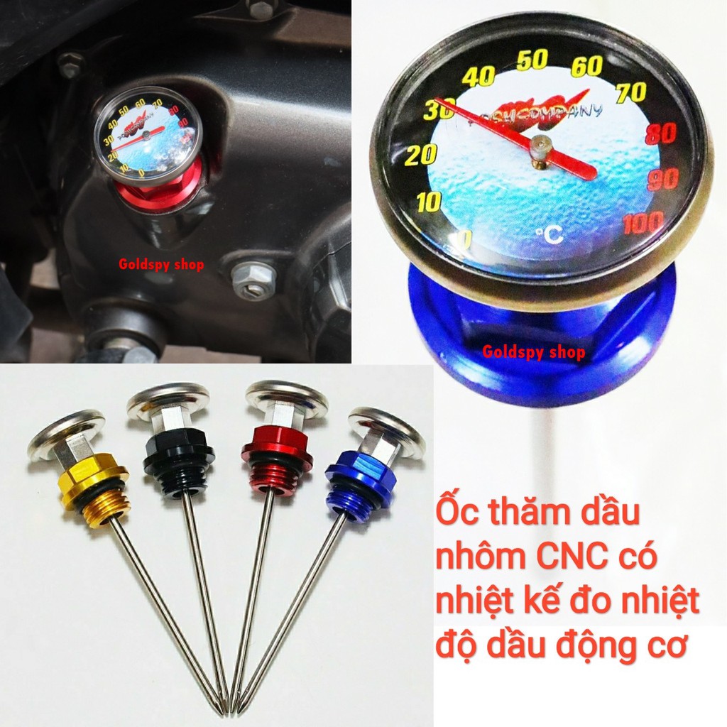 Ô tô > Dầu nhớt và phụ gia ô tô > Mỡ & Chất bôi trơn || Ty thăm nhớt nhôm CNC - Ốc thăm dầu có nhiệt kế đo nhiệt độ dầu động cơCòn hàng