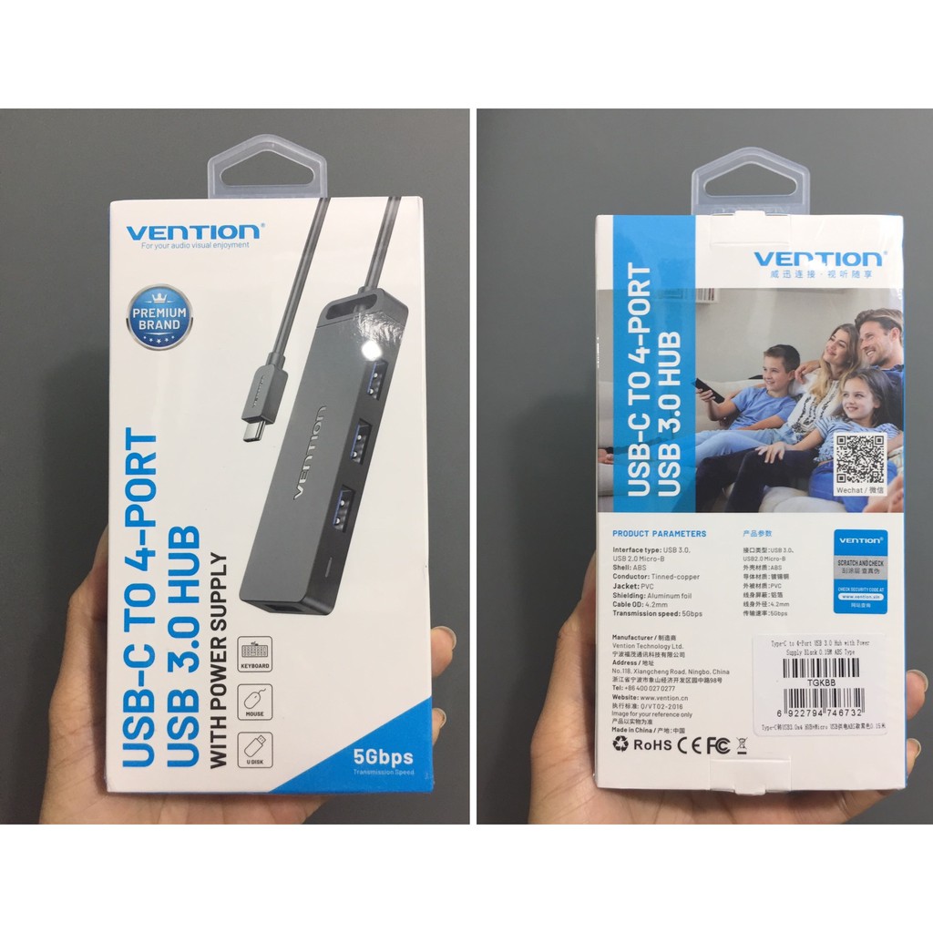 Máy tính & Laptop > Phụ Kiện Máy Tính > Bộ chia cổng USB & Đọc thẻ nhớ || [ Type-C ra 4 USB3.0) Hub/ Đầu chuyển cổng Type-C Vention TGKBB / TGKBD (15cm/ 50cm)Còn hàng