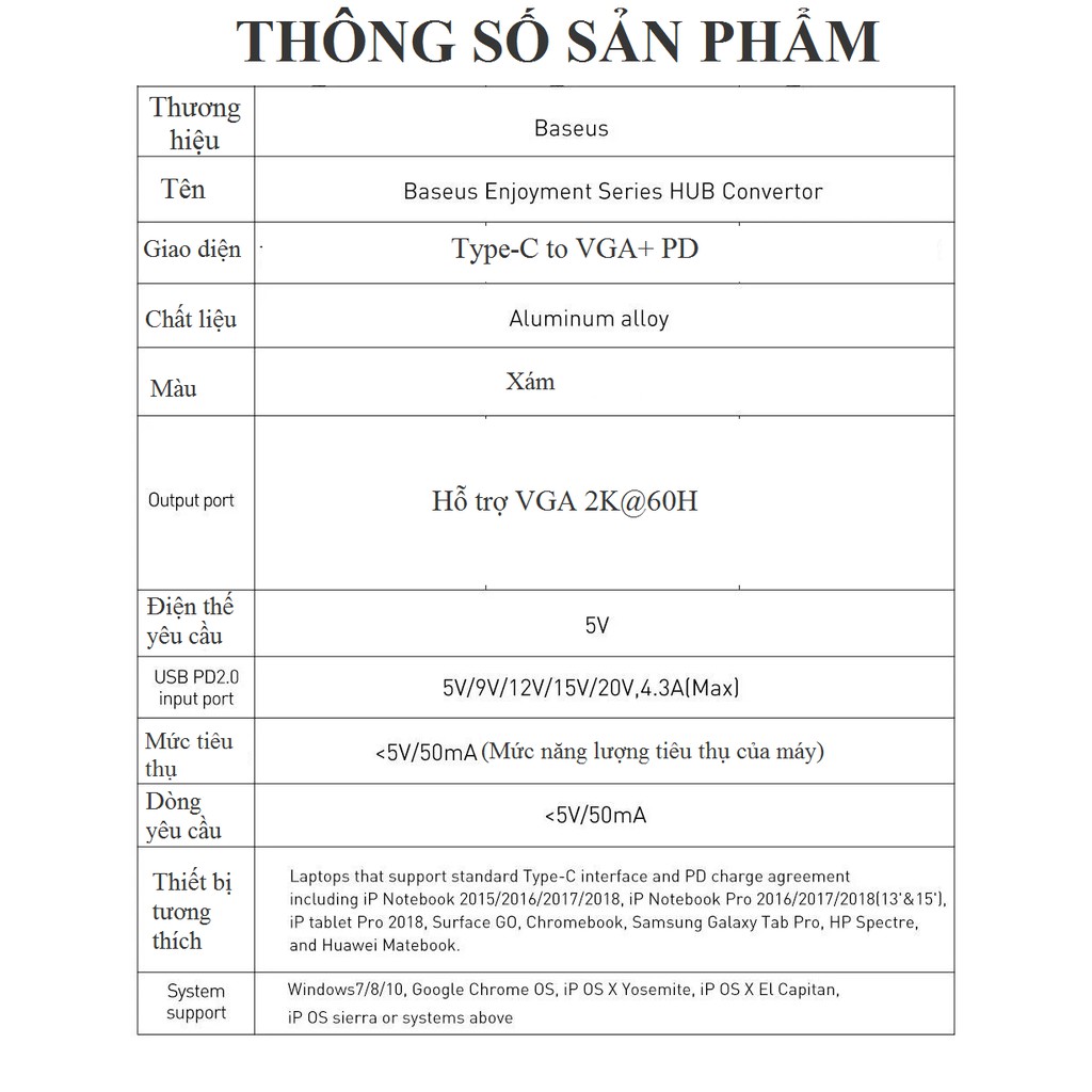 Giới thiệu [Type-C ra VGA] Hub/Bộ chuyển cổng Baseus CAHUB-O0G