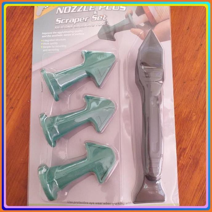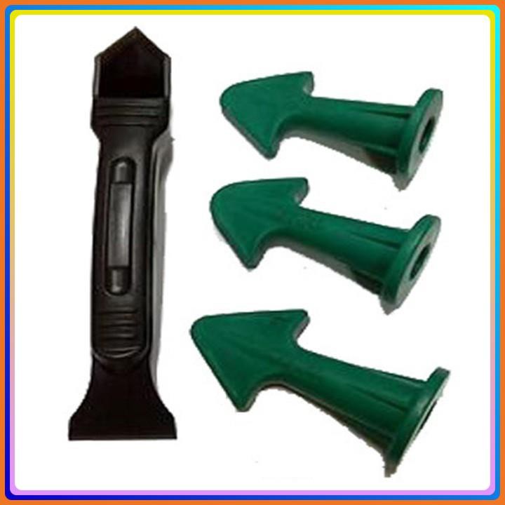 Bộ đầu bơm keo silicone kiêm miết mạch kèm dụng cụ làm sạch gồm có :