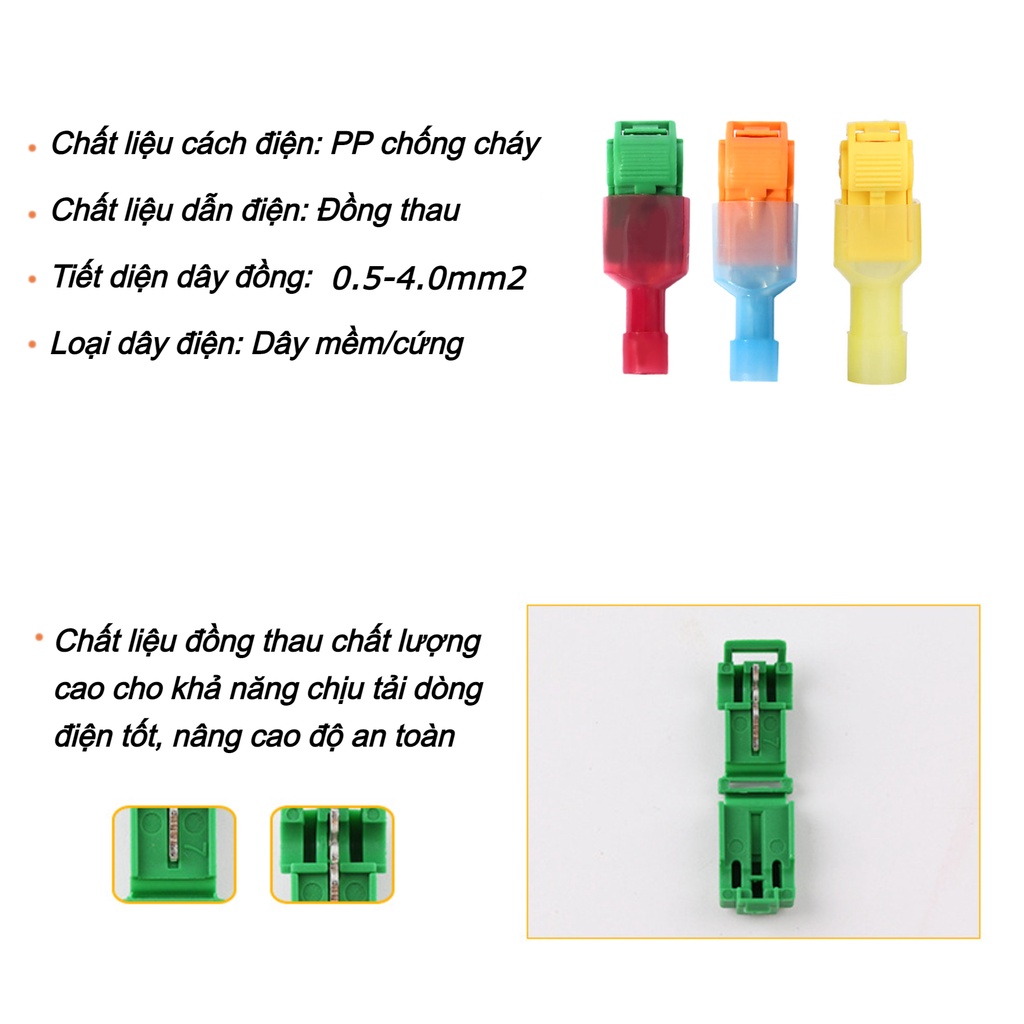 Bộ đầu cút nối dây điện chữ T nối nhanh 0.5-4.0mm2, chống nước, chống cháy an toàn nhiều loại