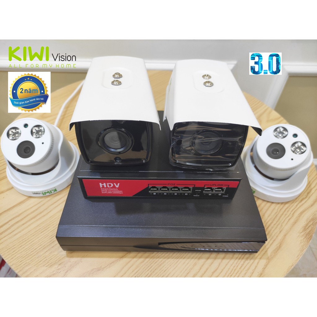Bộ camera IP POE đi dây thu âm, báo động trộm, hồng ngoại 3.0BH 24 Tháng