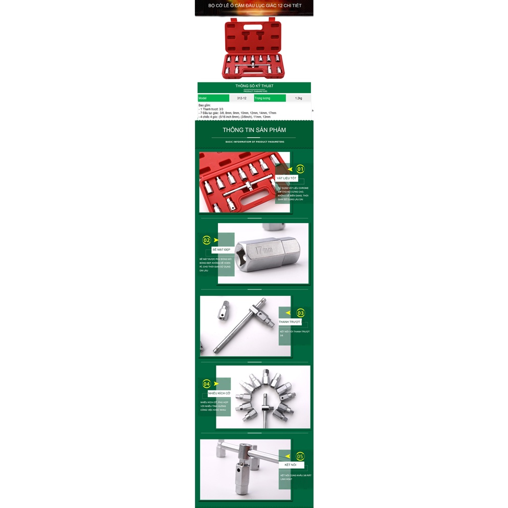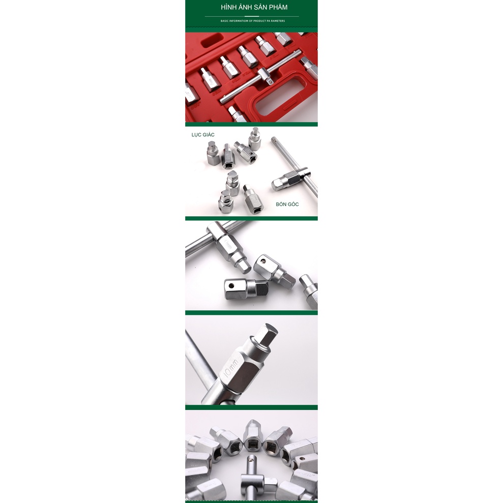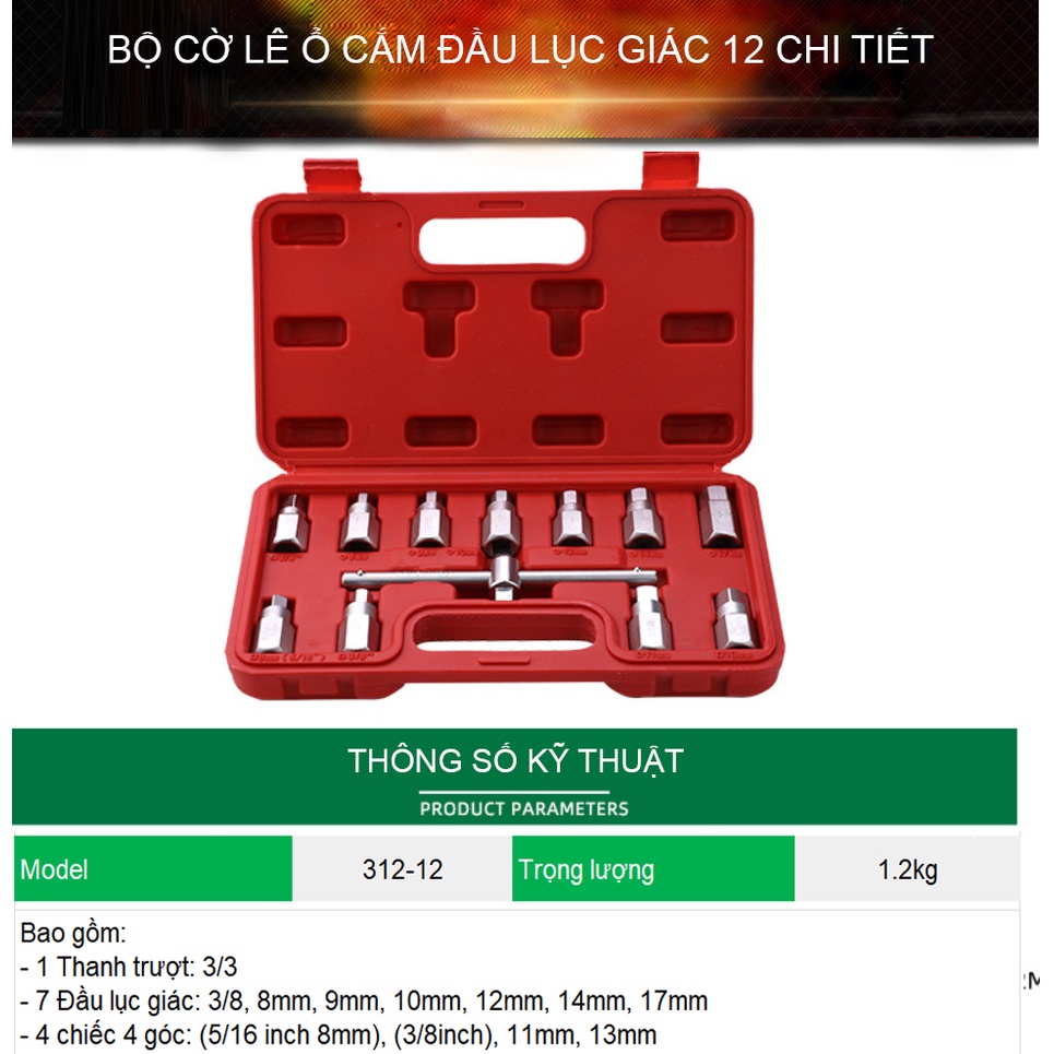 Giới thiệu Bộ đầu khẩu lục giác thanh 3/8 với 12 chi tiết TUOSEN (hộp màu đỏ)