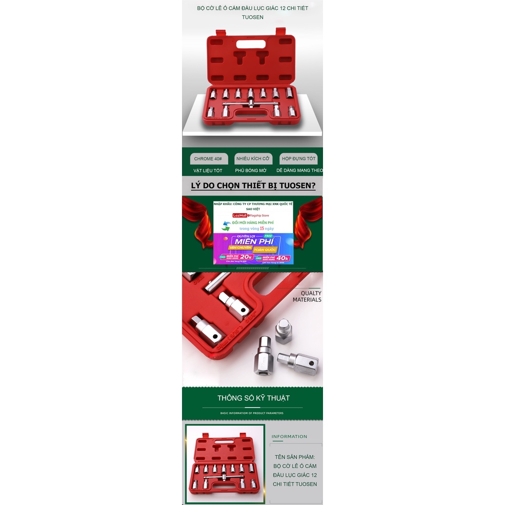 Nhà cửa & Đời sống > Dụng cụ & Thiết bị tiện ích > Dụng cụ > Hộp dụng cụ cầm tay || Bộ đầu khẩu lục giác thanh 3/8 với 12 chi tiết TUOSEN (hộp màu đỏ)Còn hàng