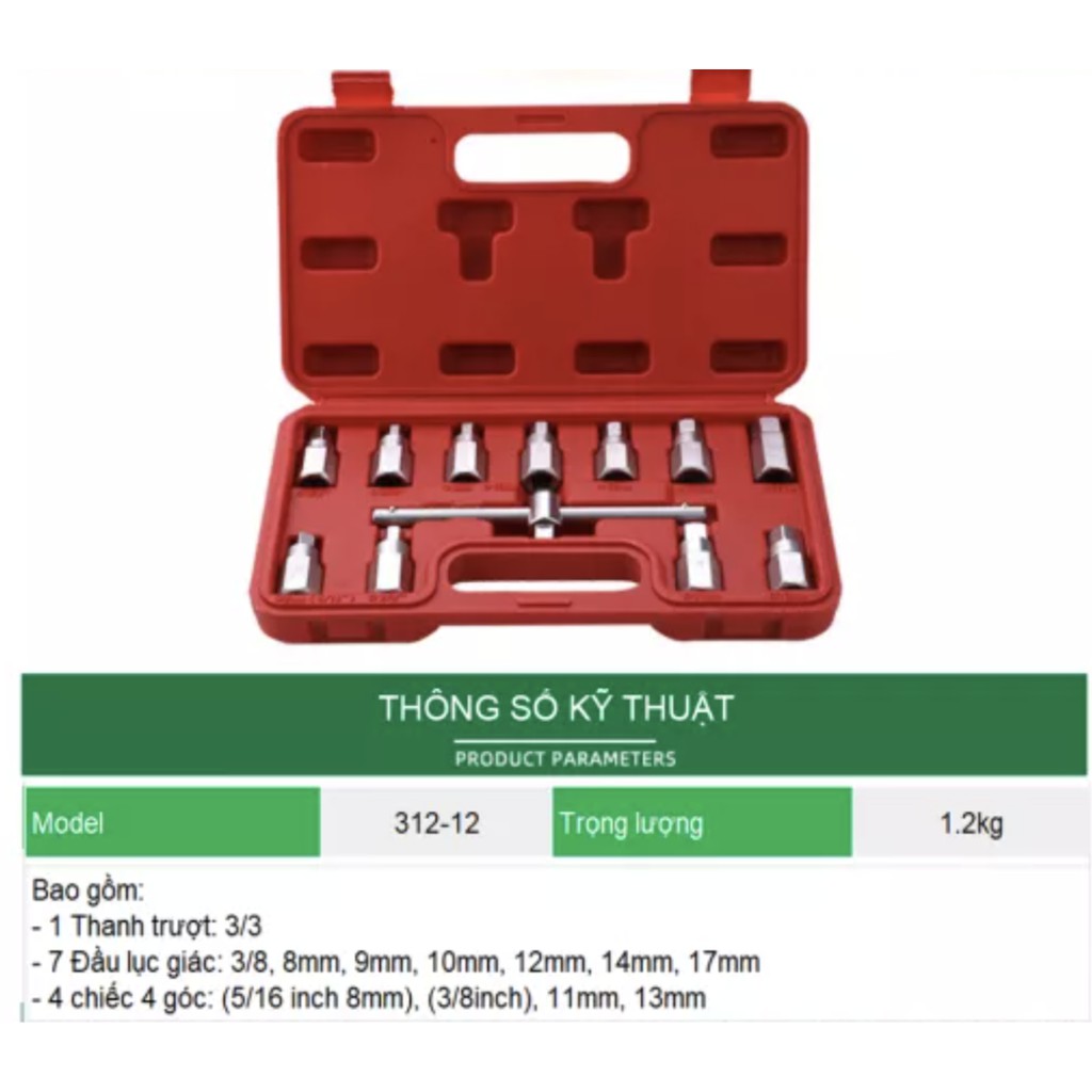 Giới thiệu Bộ đầu khẩu lục giác thanh 3/8 với 12 chi tiết TUOSEN (hộp màu đỏ)