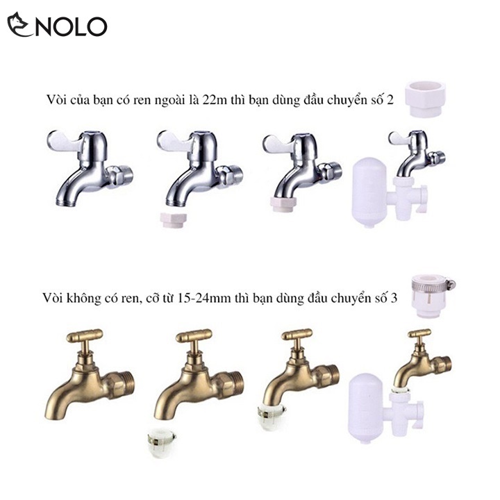 Tùy theo từng đầu vòi nước, mà bạn phải sử dụng hoặc không sử dụng bộ phụ kiến đầu nối.