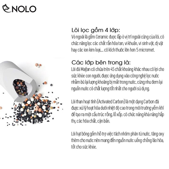 Lõi hạt bóng gốm hỗ trợ việc tách nhóm phân tử nước, tăng oxy thêm cho nước nên mang đến dòng nước uống chống lão hóa, tốt cho sức khỏe.